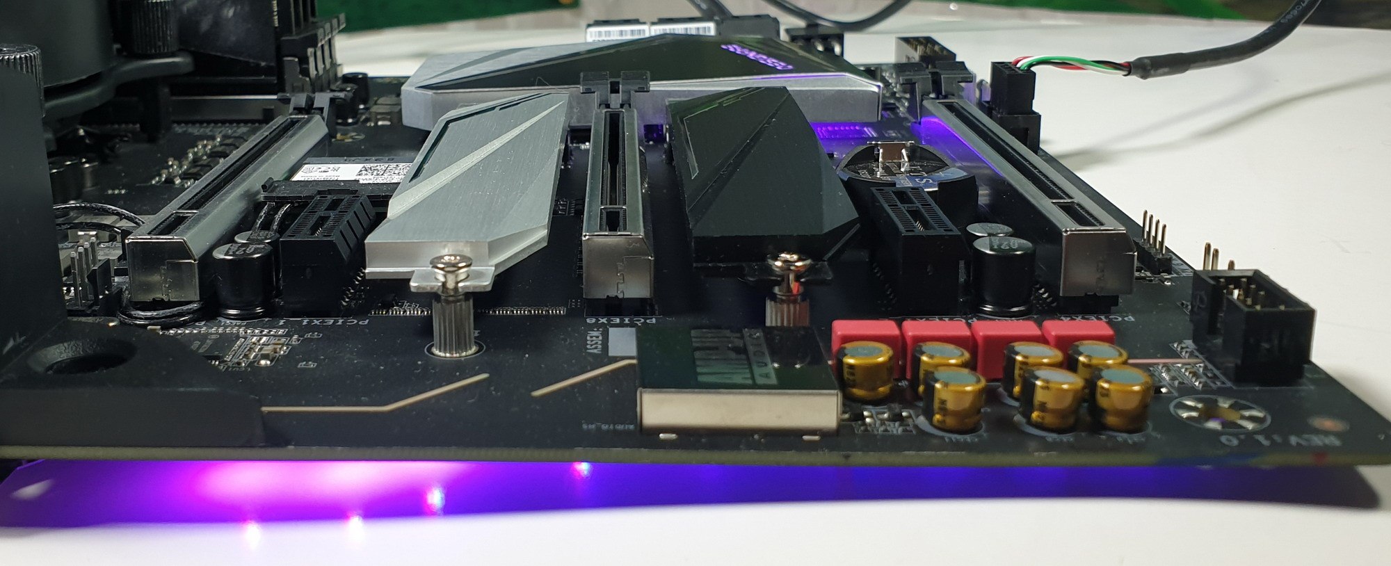 Все слоты M.2 обеспечивают чипсетный интерфейс PCI-E 3.0 x4 в дополнение к SATA, чего должно быть достаточно даже для самых быстрых накопителей. Разумеется, в любой слот можно установить модули Intel Optane Memory. Также хорошо видно, что оба M.2 имеют радиаторы. Актуально ли охлаждение для таких модулей? Возможно.