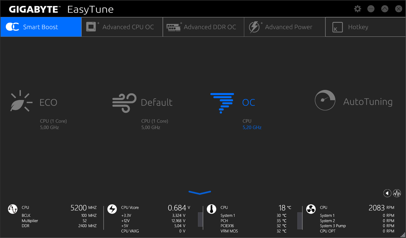 По умолчанию будет работать режим, который предусматривает отсутствие какого-либо разгона, кроме штатной технологии Intel Turbo Boost. Поддержка UEFI (BIOS) сейчас полностью интегрирована в ПО, поэтому данная программа способна менять параметры, устанавливаемые через интерфейс UEFI Setup.