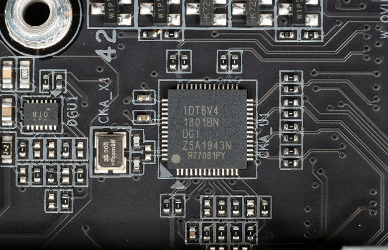 Для поддержания стабильных частот на шине PCIe (и для нужд оверклокеров) имеется внешний тактовый генератор. Он станет просто необходимым после включения PCIe 4.0 на ряде слотов (это появится на многих Z490 платах после выхода процессоров Intel Rocket Lake-S).