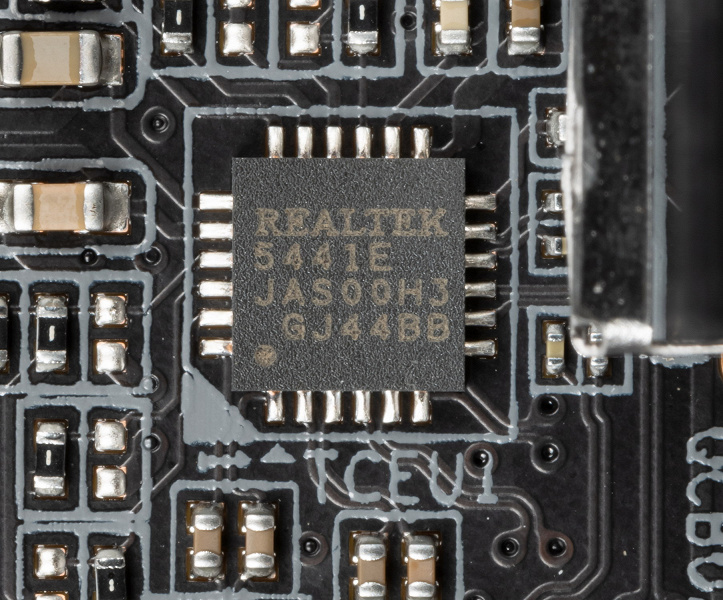 - 5 портов USB 3.2 Gen2: 3 реализованы чисто через Z490 и представлены на задней панели портами Type-A (красного цвета); еще 1 реализован через USB 3.2 Gen1 от Z490 с преобразованием в Gen2 c помощью контроллера Realtek 5441 и представлен внутренним портом Type-C (для подключения к соответствующему разъему на передней панели корпуса); и еще один также реализован через USB 3.2 Gen1 от Z490 с преобразованием в Gen2 c помощью другого контроллера Realtek 5441 и представлен портом Type-C на задней панели;
