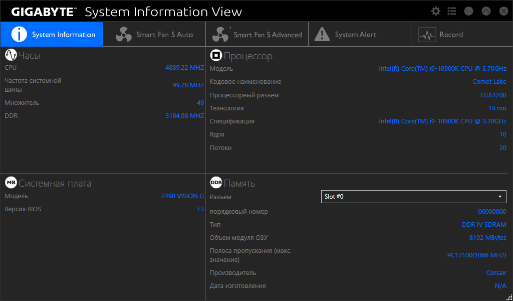 - материнская плата Gigabyte Z490 Vision G;