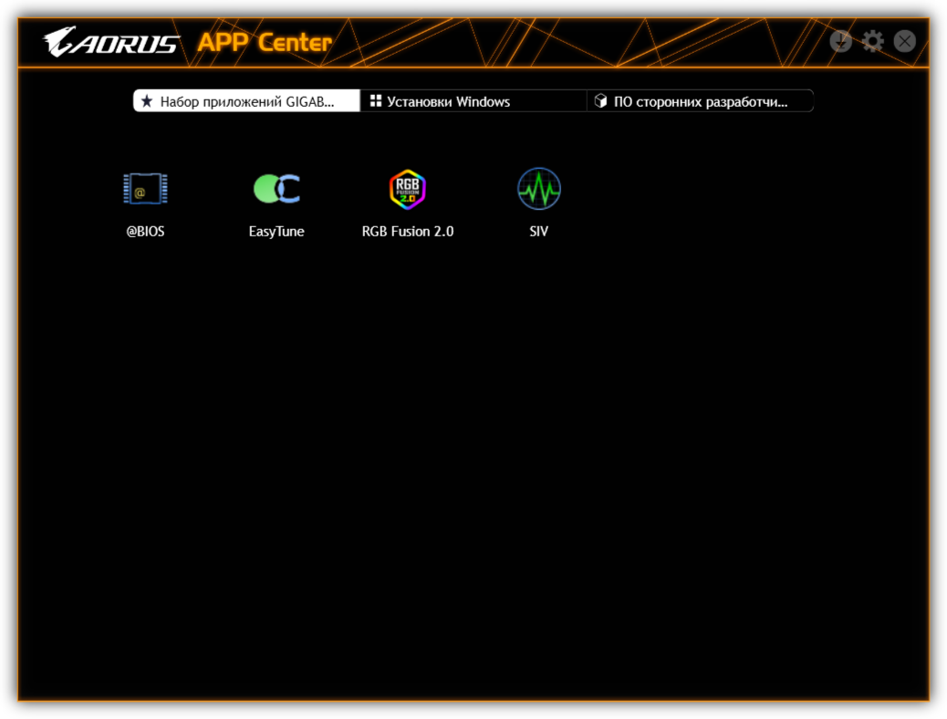 App Center помогает загрузить все остальные нужные (и не совсем нужные) утилиты. Большинство из них запускается только из App Center. Эта же программа следит и за обновлениями установленного фирменного ПО от Gigabyte, а также за актуальностью прошивки BIOS.