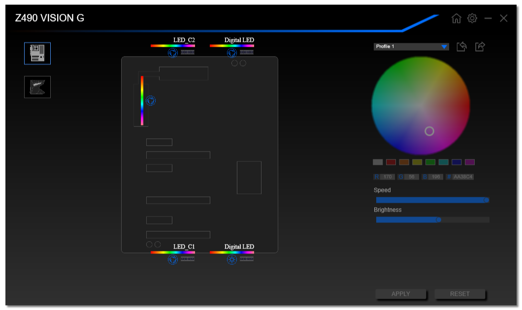 Топовые платы Gigabyte (как и других производителей) всегда имеют красивую подсветку. Но это именно топовые. Текущая ситуация касается среднего сегмента, но и в данном случае эффекты подсветки есть, и создаются на кожухе над задним блоком портов. Так же мы помним про 4 разъема для подключения внешней подсветки, и всем этим можно управлять через программу RGB Fusion.