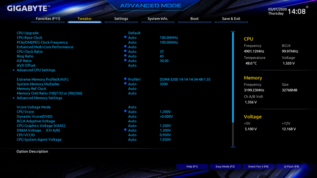 Формально имеется поддержка памяти до 2933 МГц, однако всем хорошо известно, и производители материнских плат это активно рекламируют: через XMP-профили можно использовать частоты до 4800 и выше МГц. В частности данная плата поддерживает частоты до 4800 и даже 5000 МГц.