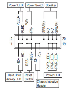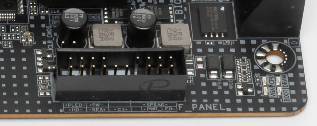Разумеется, есть и традиционный набор штырьков FPanel для подключения проводов к передней (а сейчас уже часто и верхней или боковой или все это сразу) панели корпуса.