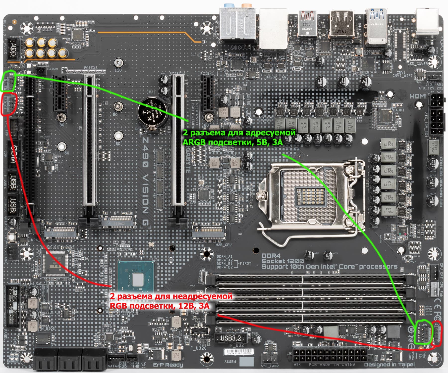 Схемы подключения стандартны для всех материнских плат, поддерживающих подсветку: