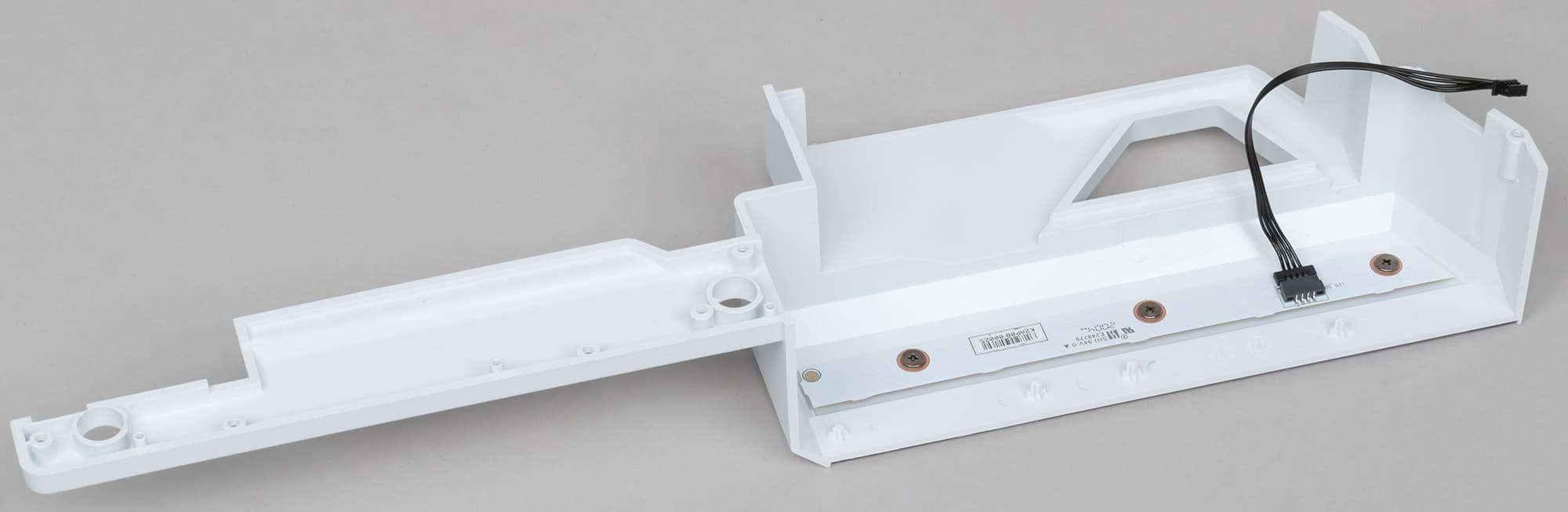 Над аудиоподсистемой и задним блоком портов установлен пластиковый кожух соответствующего дизайна, он оснащен подсветкой.