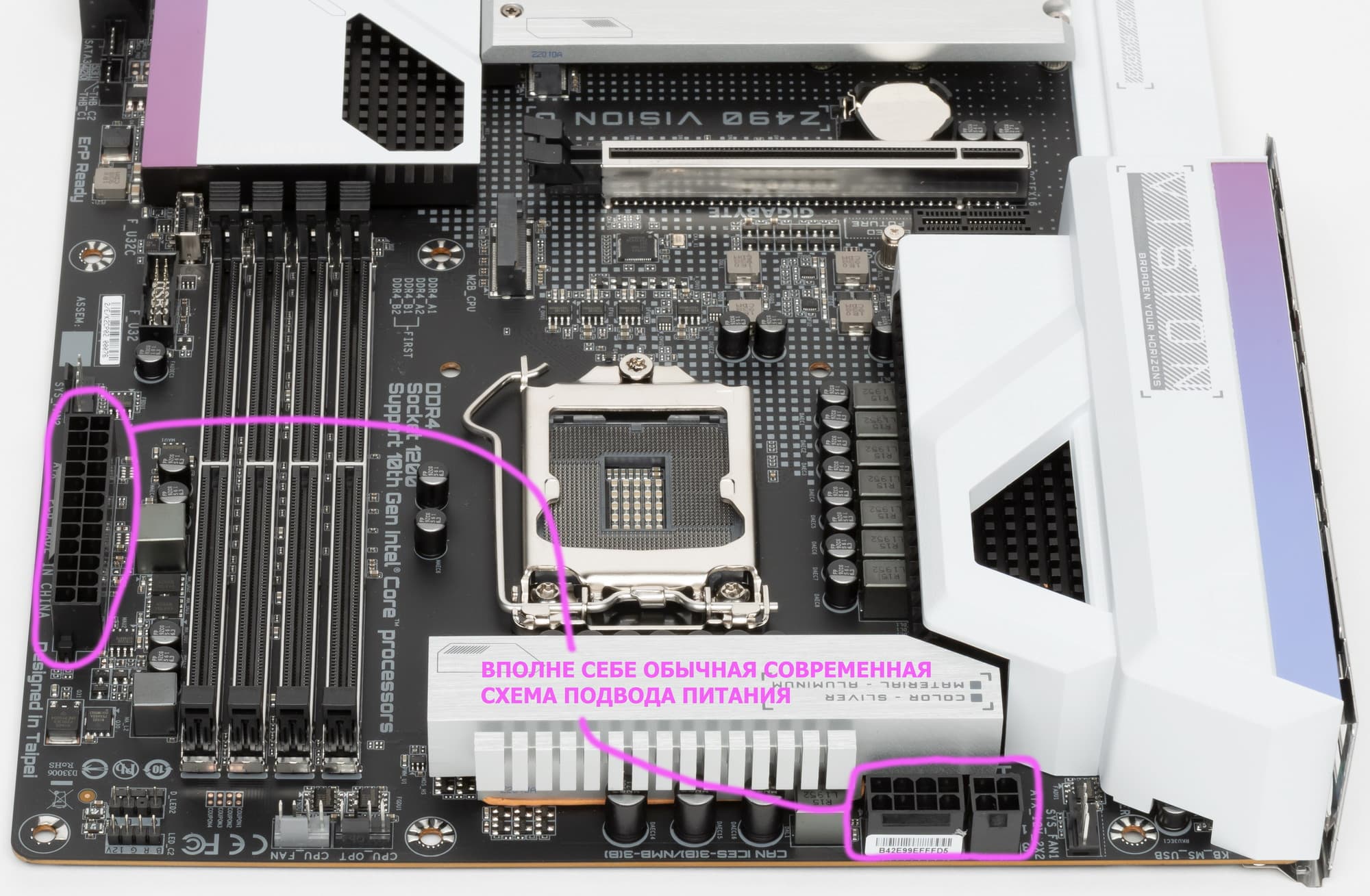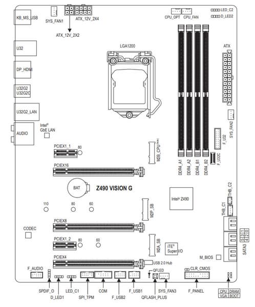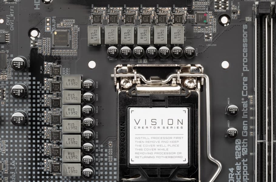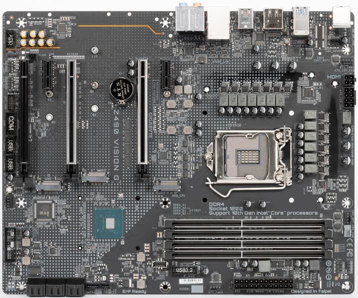 Еще раз надо напомнить, что Gigabyte Z490 Vision G поддерживает процессоры Intel Core 10-го поколения, выполненные под разъем (сокет) LGA1200. Система крепления систем охлаждения для CPU точно такая же, как и для LGA1151 (прежние кулеры подойдут).
