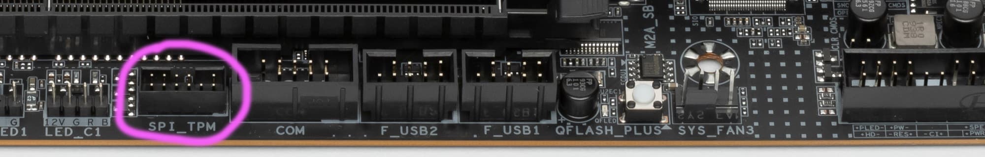 Ну и наверно последний «прибамбас» — это разъем TPM для подключения разных систем безопасности.