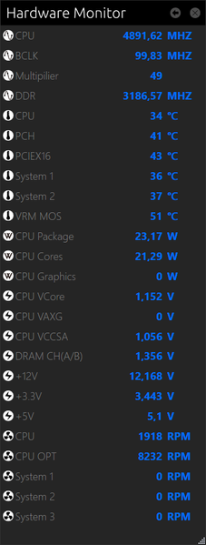 Также можно на экран вывести мониторинг состояния многих параметров работы ПК.