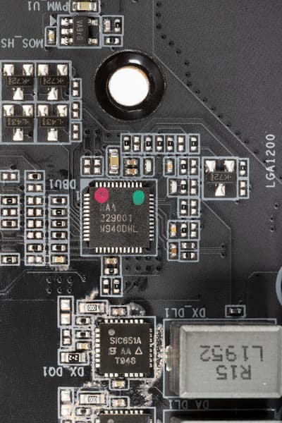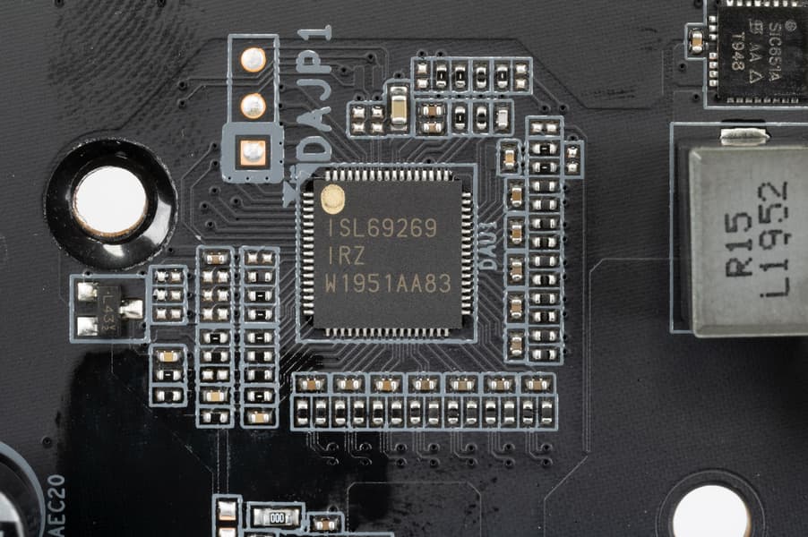 Не зря выше производитель делает акцент на честное и прямое управление всеми 12 фазами VCore. Разработчики решили распределить управление между двумя ШИМ-контроллерами: ISL69269 от Intesil (Renesas), который рассчитан максимум на 8 фаз
