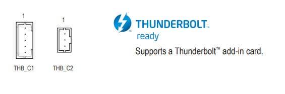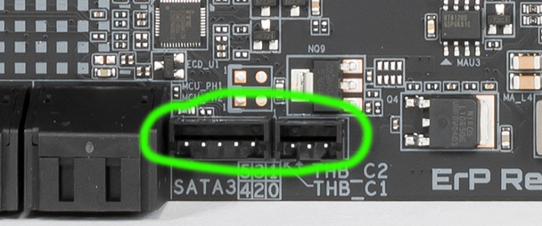 Материнская плата также поддерживает подключение контроллеров Thunderbolt (в виде отдельных плат расширения), для чего на ней имеются отдельные разъемы.
