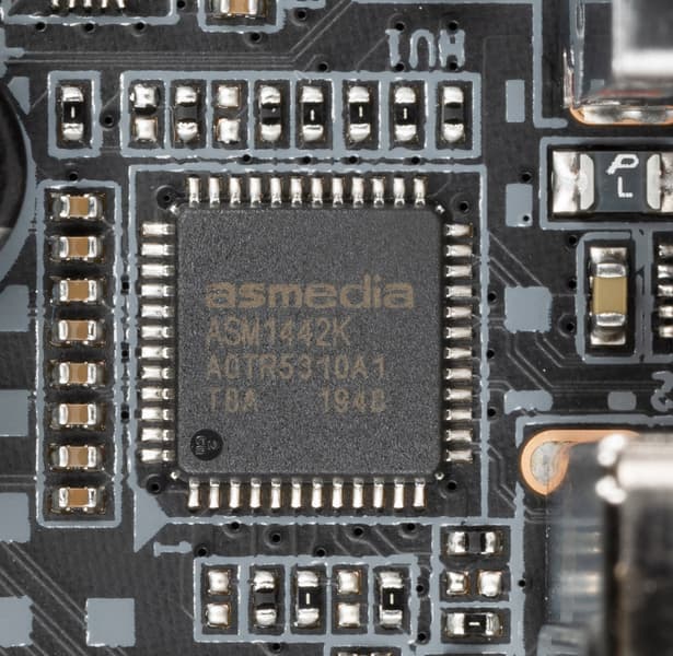 Поскольку процессоры Intel могут иметь интегрированную графику, то плата имеет гнездо вывода HDMI версии 1.4. В помощь этому предназначен чип ASM1442 от ASMedia, который преобразует сигнал TMDS для поддержки стандарта 4К.