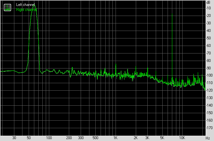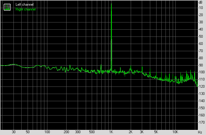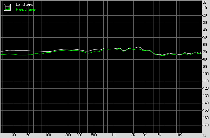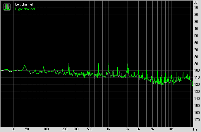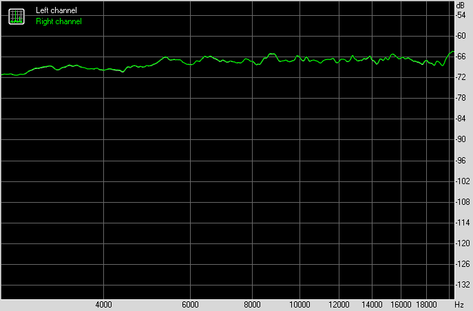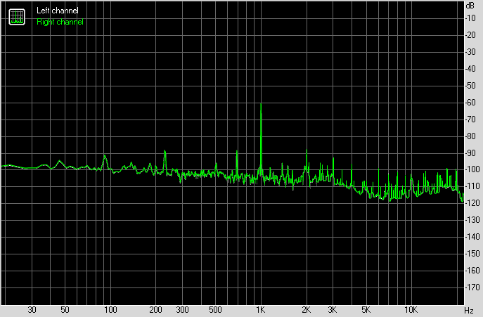 Для тестирования выходного звукового тракта, предназначенного для подключения наушников или внешней акустики, мы использовали внешнюю звуковую карту Creative E-MU 0202 USB в сочетании с утилитой RightMark Audio Analyzer 6.4.5. Тестирование проводилось для режима стерео, 24-бит/44,1 кГц. Во время тестирования ИБП тестового ПК физически отключался от электросети и работал на аккумуляторе.
