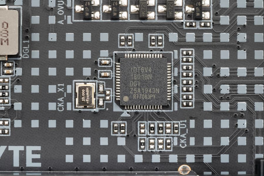 Для поддержания стабильных частот на шине PCIe (и для нужд оверклокеров) имеется внешний тактовый генератор.