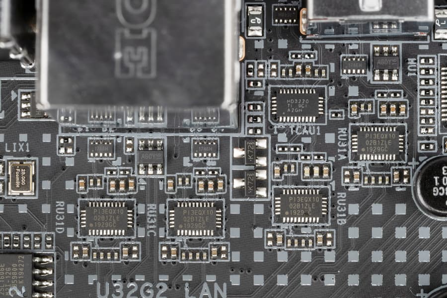 Все быстрые USB порты Type-A/Type-C оснащены ре-драйверами PI3EQX10 от Pericom, дающими устойчивый вольтаж, способный обеспечить быструю зарядку мобильных гаджетов через них.