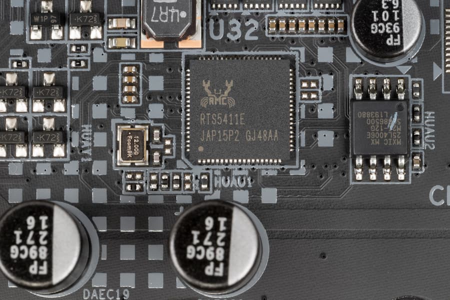 - 6 портов USB 3.2 Gen1: 2 реализованы через Z490 и представлены внутренним разъемом на материнской плате на 2 порта ; еще 4 реализованы через контроллер Realtek RTS5411E (на него потрачена 1 линия PCIe) и представлены портами Type-A на задней панели (синие);