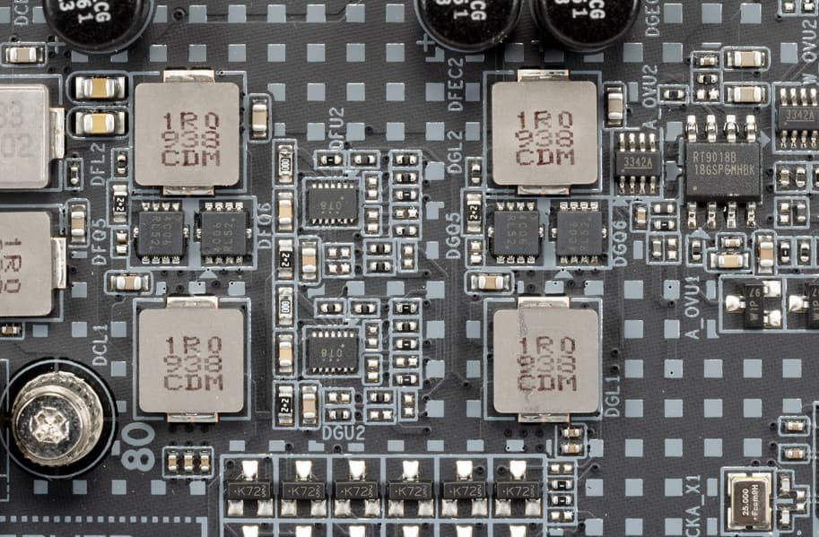 Питание VCCIO идет по двухфазной схеме c цифровым контроллером RT9018B от Richtek Technology.