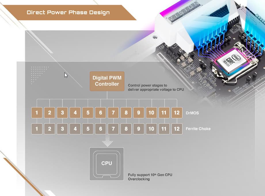 Выше мы изучили потенциальные возможности тандема Z490+Core, а теперь посмотрим, что из этого и как реализовано в данной материнской плате.
