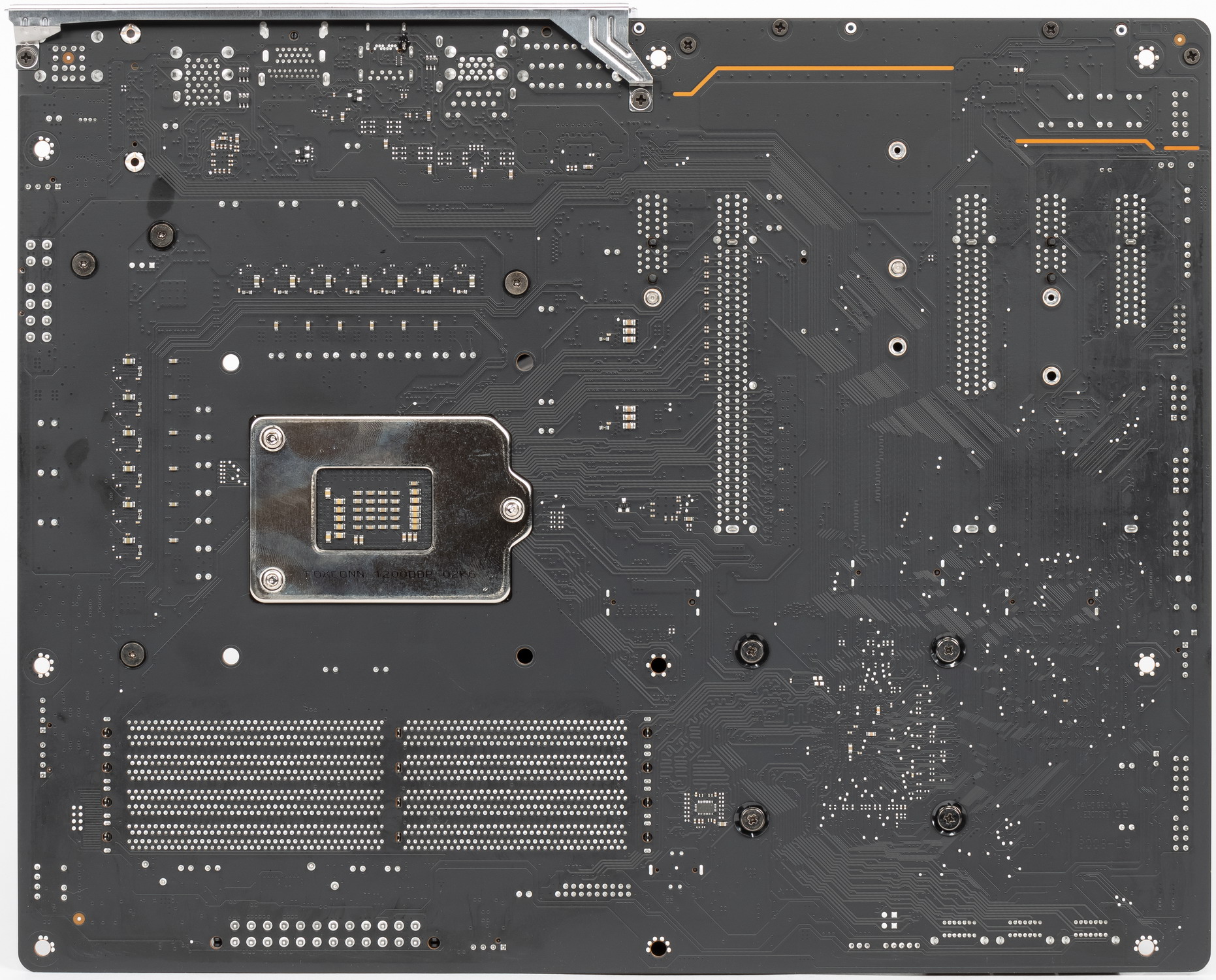 Слоты DIMM имеют металлическую окантовку, которая препятствует деформации слотов и печатной платы при установке модулей памяти и защищает от электромагнитных помех, и которая обычно всегда является составной частью флагманского набора у материнских плат, что и удивительно.