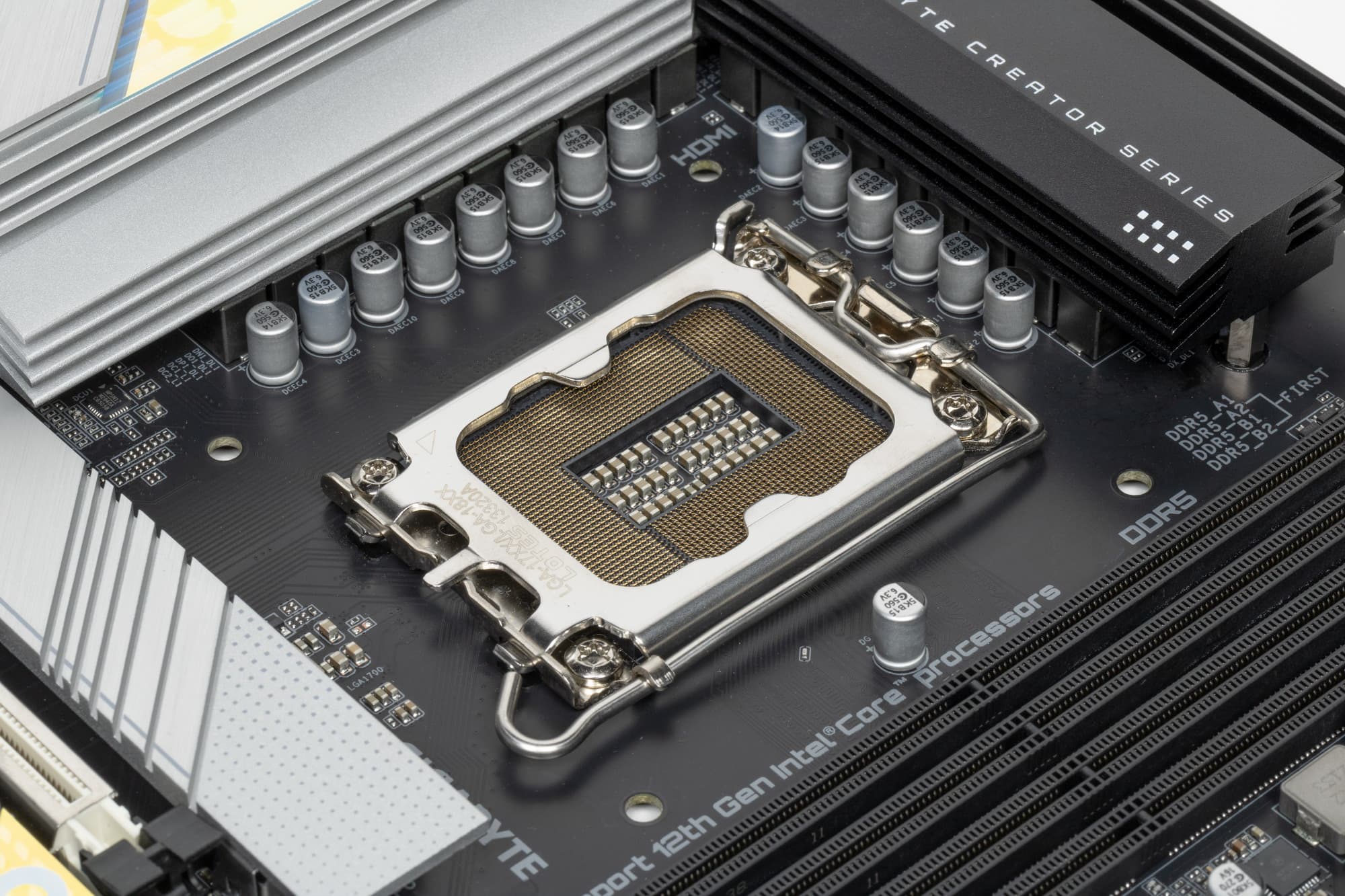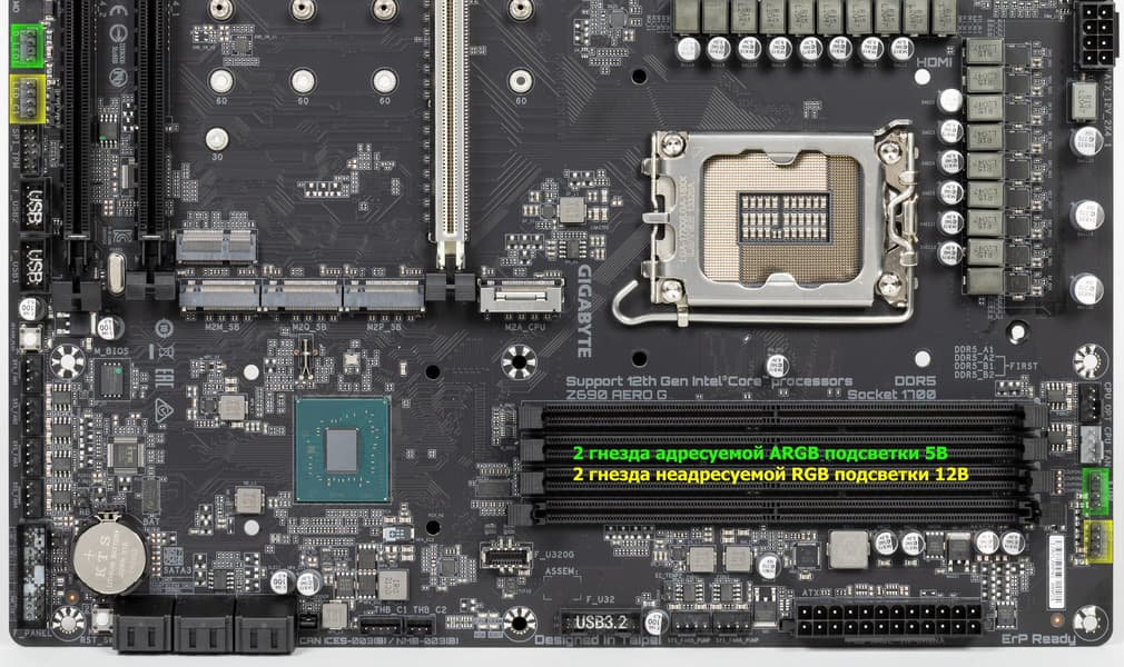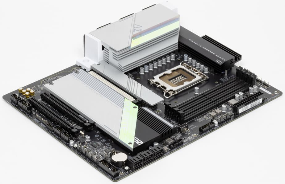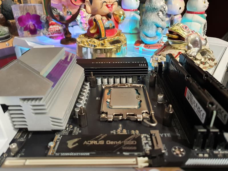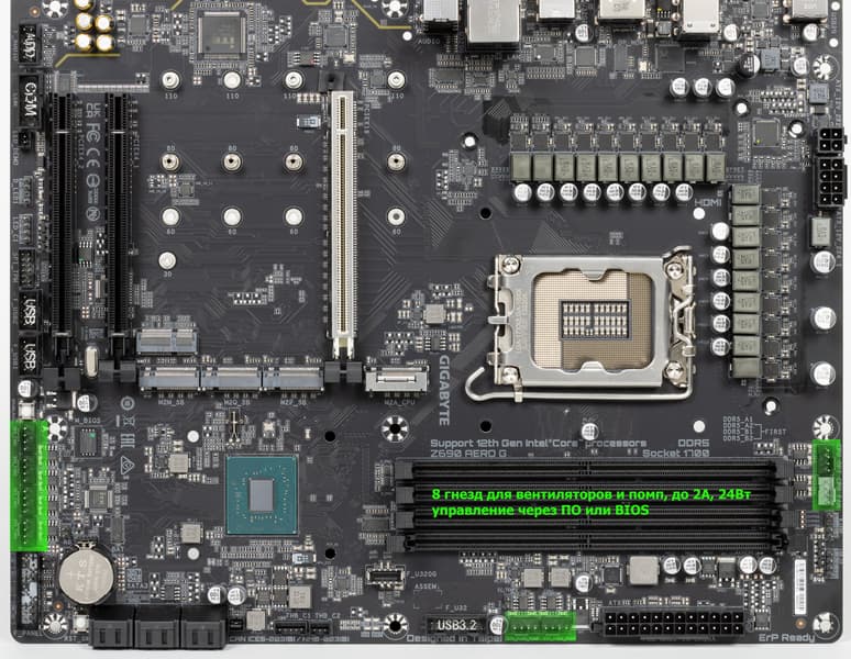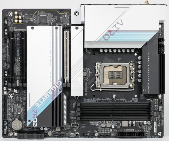 Еще раз надо напомнить, что Gigabyte Z690 Aero G поддерживает процессоры Intel Core 12-го поколения, выполненные под разъем (сокет) LGA1700. Система крепления систем охлаждения для CPU несовместима с той, что для LGA1151/1200. Но при этом следует иметь в виду, что ряд старых СО все же сможет быть применим, лишь придется где-то приобретать или заказывать у производителя комплект крепежа под LGA 1700. Дело в в том, что новые процессоры 12ххх на 0.8 мм тоньше предшественников, и кулеры с жесткой установкой в матплате на фиксированную высоту просто не достанут до 12ххх. Подойдут лишь СО с пружинистой посадкой подошвы на процессор.
