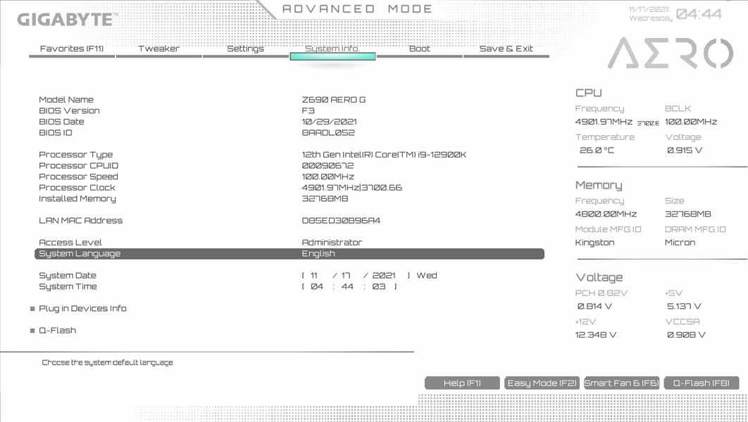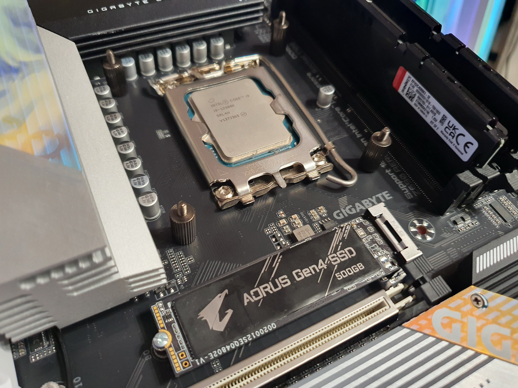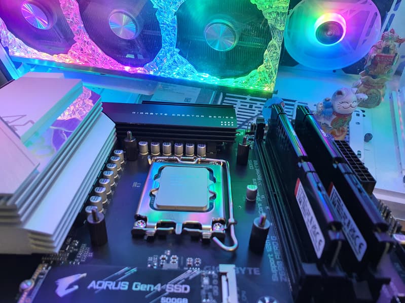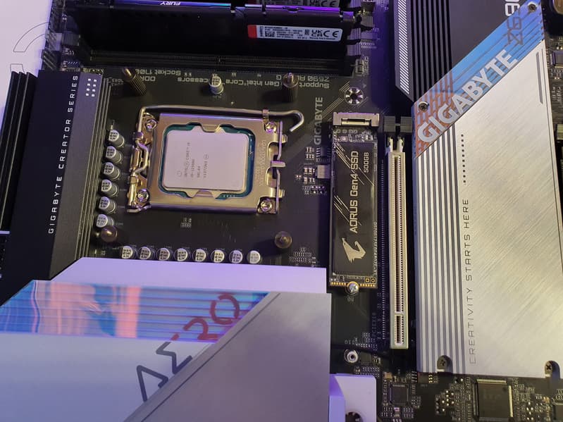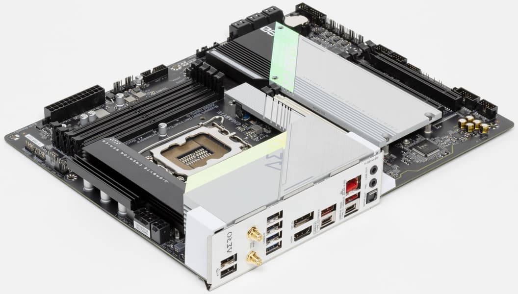 Еще раз надо напомнить, что Gigabyte Z690 Aero G поддерживает процессоры Intel Core 12-го поколения, выполненные под разъем (сокет) LGA1700. Система крепления систем охлаждения для CPU несовместима с той, что для LGA1151/1200. Но при этом следует иметь в виду, что ряд старых СО все же сможет быть применим, лишь придется где-то приобретать или заказывать у производителя комплект крепежа под LGA 1700. Дело в в том, что новые процессоры 12ххх на 0.8 мм тоньше предшественников, и кулеры с жесткой установкой в матплате на фиксированную высоту просто не достанут до 12ххх. Подойдут лишь СО с пружинистой посадкой подошвы на процессор.