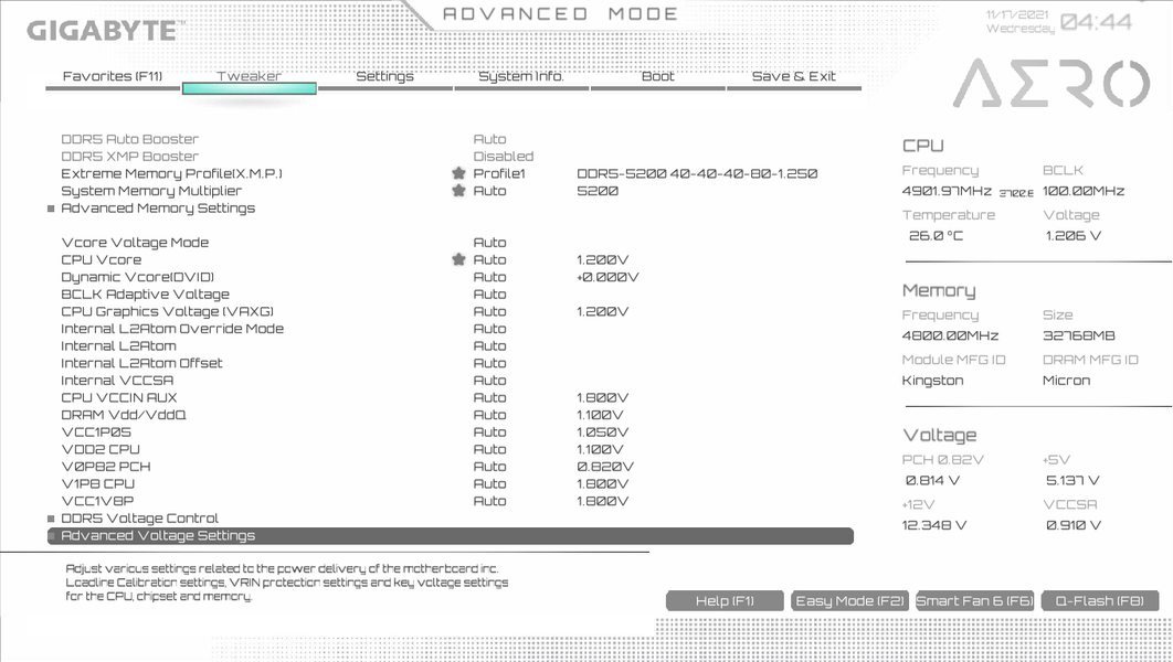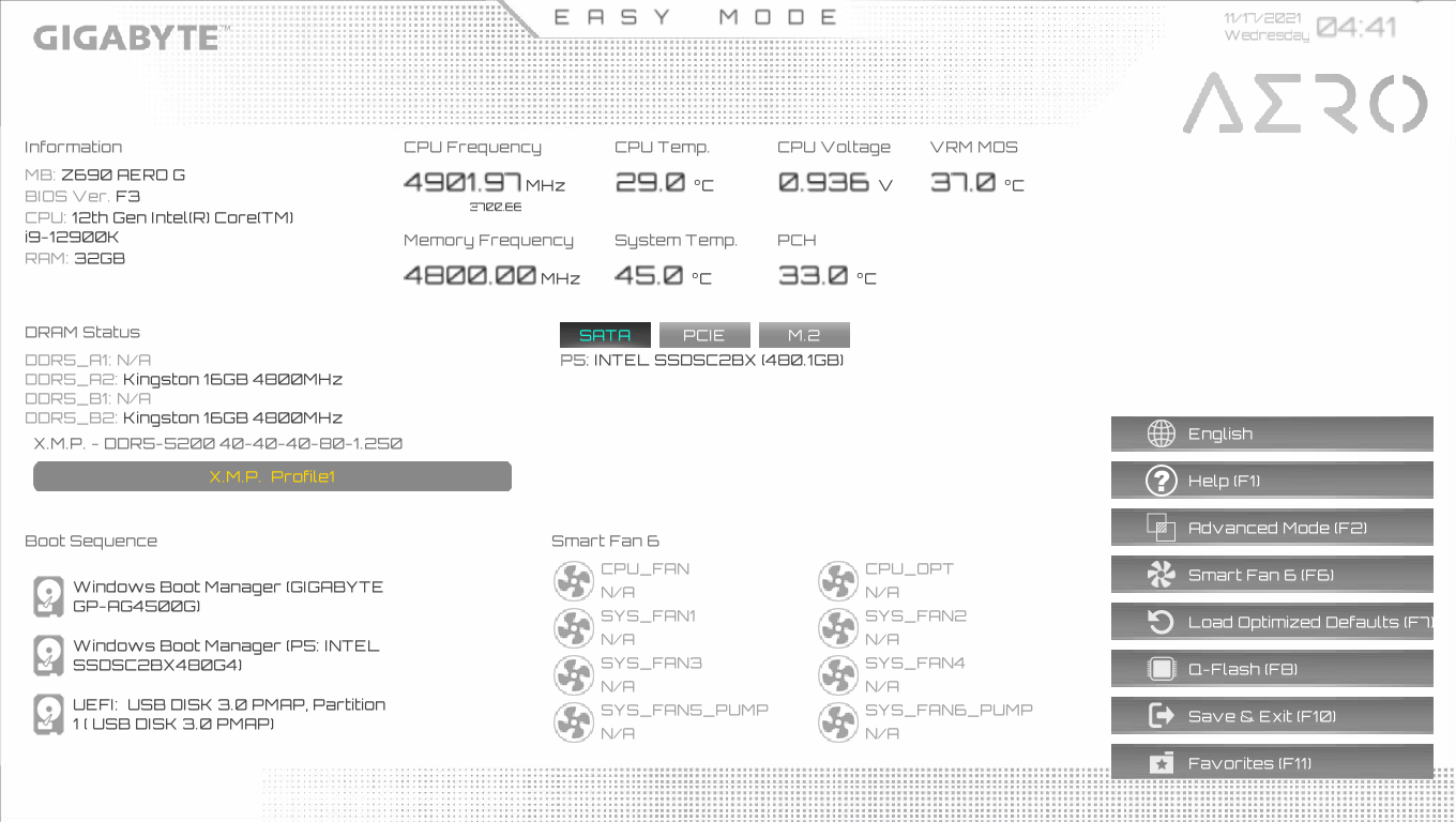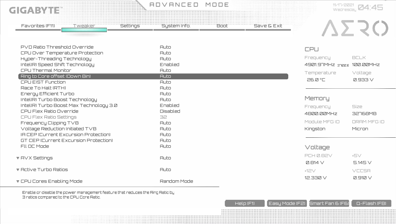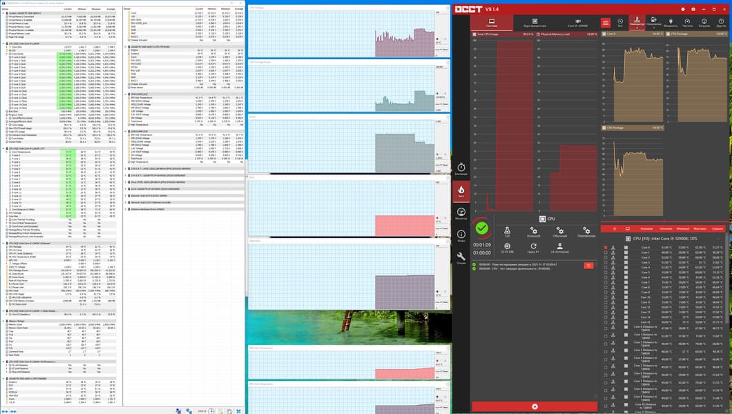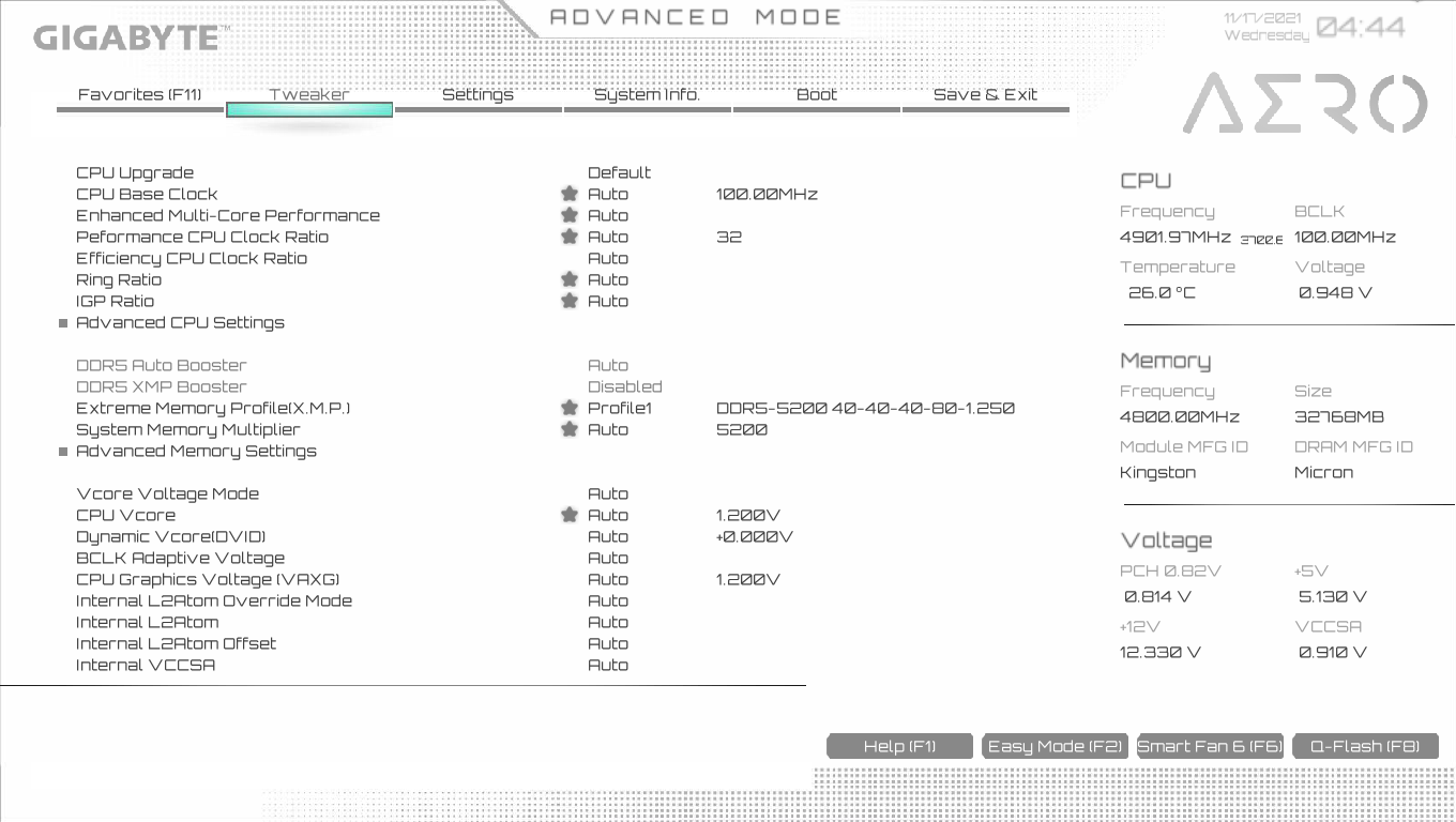 Ну что же, мы видим, что по умолчанию матплата выставила весьма приличный авторазгон процессора до 4,2 ГГц по P-ядрам. Подчеркну, что именно под очень тяжелой нагрузкой. А без оной частота по ядрам скачет и до 5,2 ГГц. А что касается Е-ядер, то там тоже неплохо: 3,2 ГГц под стресс-нагрузкой, и 3,9 ГГц без оной. Нагрев в пределах нормы по всем параметрам. Стоит напомнить, что Р-ядра — это обычные всем привычные ядра, имеющие по 2 потока каждый, «Р» — означает Performance, то есть производительные. «Е» — это энергоэффективные ядра, так называемые, малые ядра, у них по 1 потоку.