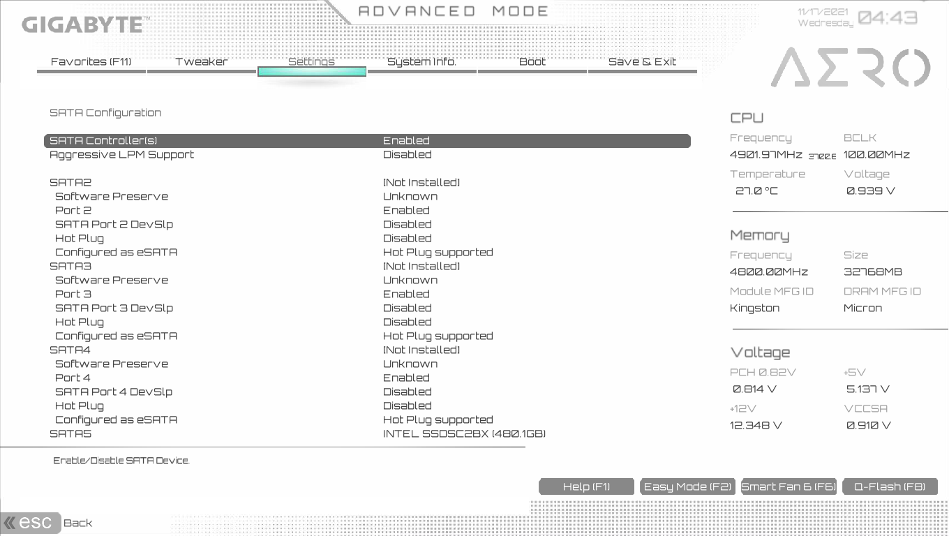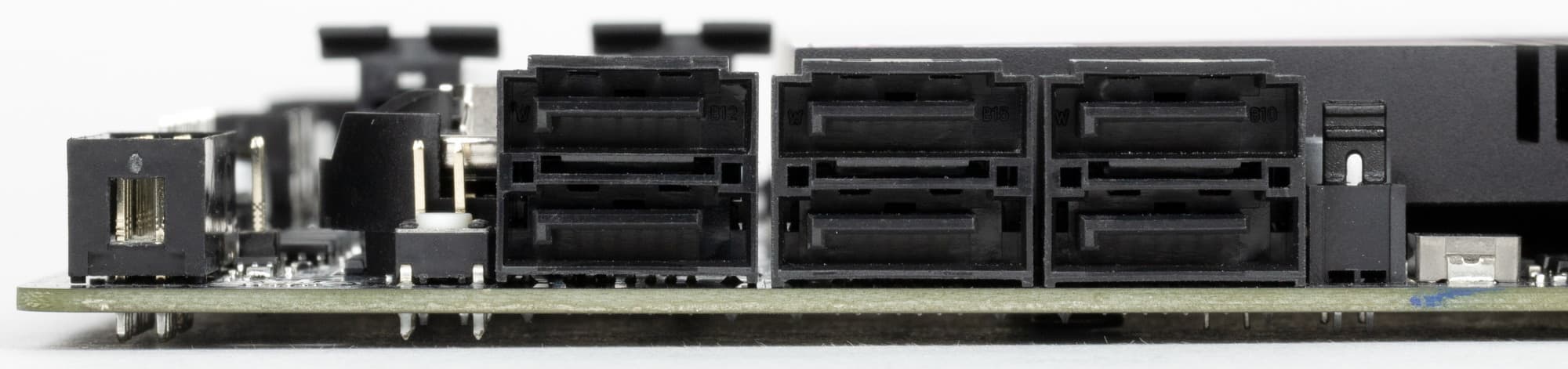 Всего у платы 6 разъемов Serial ATA 6 Гбит/с + 4 слота для накопителей в форм-факторе M.2. Порты SATA странно промаркированы, начиная с 2, реализованы через чипсет Z690 и поддерживают создание RAID.