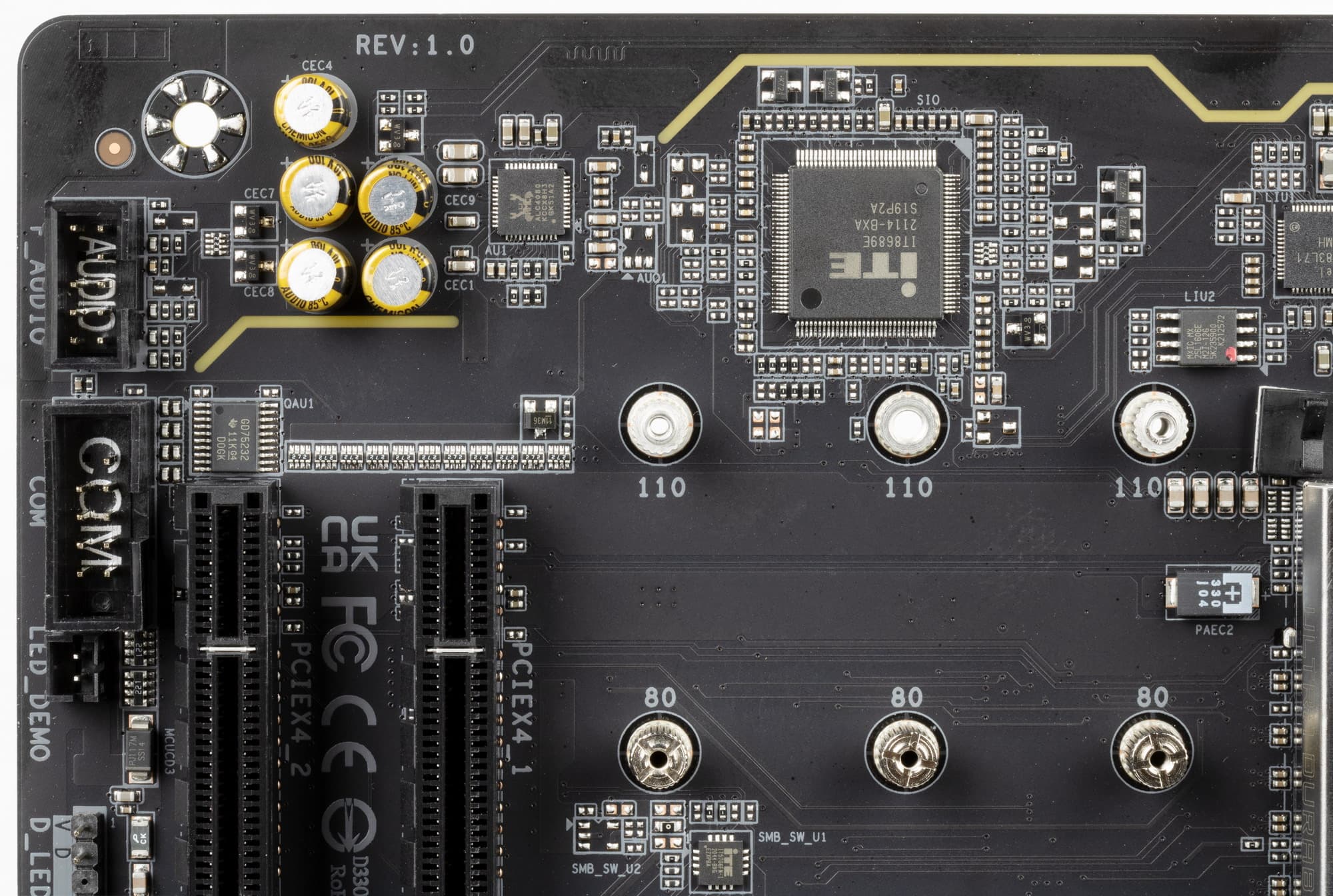 27 линий PCIe оказались занятыми (12 PCIe 4.0 + 15 PCIe 3.0). В чипсете Z690 связь с аудиокодеками идет через USB-порт. Также один USB 2.0 расходуется на поддержку BT (при наличии слота M.2 (key E) и контроллеры IT8851 и RTS5450 для своих нужд использует сигнальные линии USB 2.0 Детально об этом ниже в разделе USB-портов.