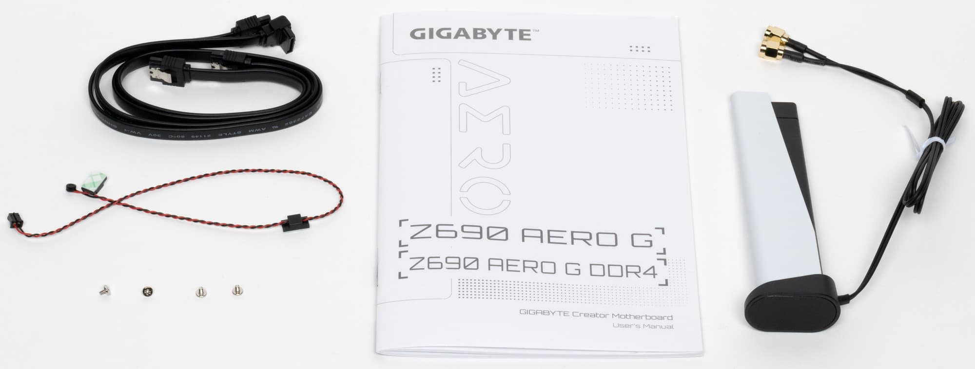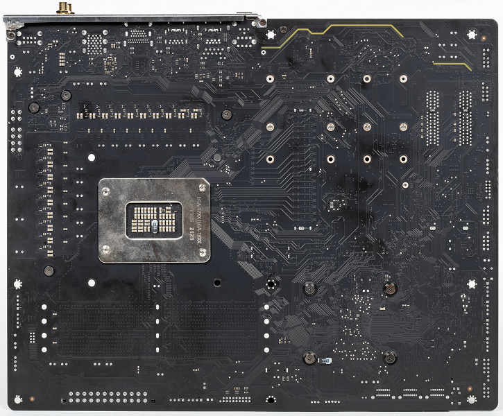 Комплект поставки минималистичен и расположен под платой. Кроме традиционных элементов типа руководства пользователя и кабелей SATA, имеются: антенна встроенного Wi-Fi/BT-модуля, винтики для М.2 слотов, ... ну и все.