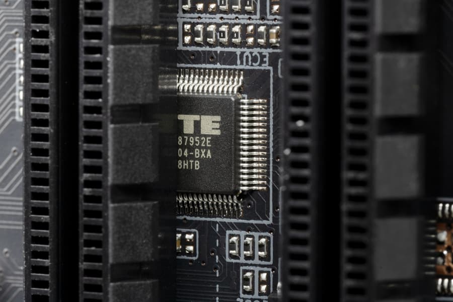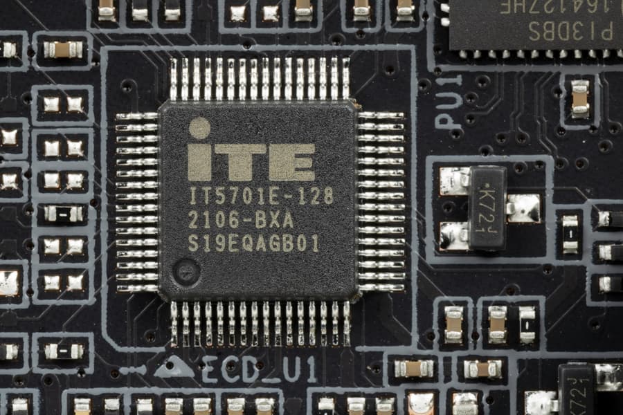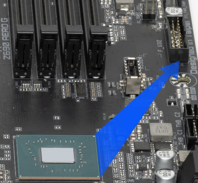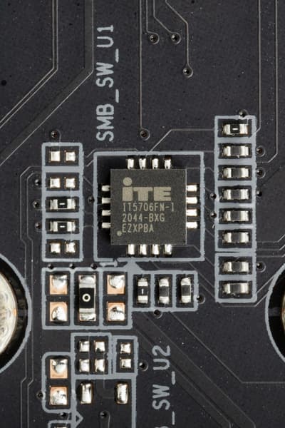 - 2 порта USB 3.2 Gen2x2: один реализован с помощью двух линий USB 3.2 Gen2 от Z690 и представлен внутренним портом Type-C (для подключения к соответствующему разъему на передней панели корпуса); второй реализован с помощью контроллеров Realtek RTS5450 и ITE IT8851 (на каждый потрачена 1 линия USB 2.0) и представлен портом Type-C на задней панели;