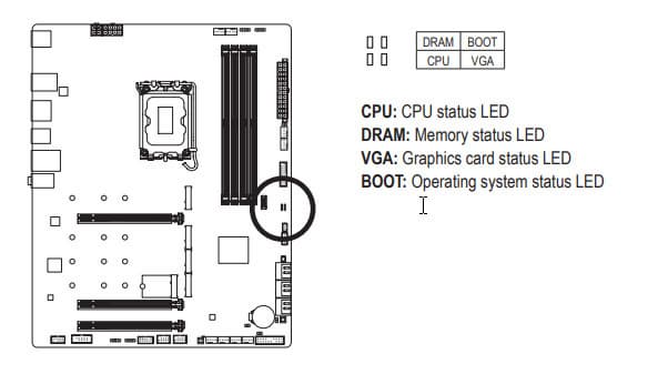 | Прочие внутренние элементы | 24-контактный разъем питания ATX 1 8-контактный разъем питания EPS12V 1 4-контактный разъем питания EPS12V 1 слот M.2 (E-key), занят адаптером беспроводных сетей 1 разъем для подключения порта USB 3.2 Gen2×2 Type-C 1 разъем для подключения 4 портов USB 3.2 Gen1 2 разъемa для подключения 4 портов USB 2.0 8 разъемов для подключения 4-контактных вентиляторов и помп ЖСО 4 разъема для подключения подсветки (2 неадресуемой RGB-ленты и 2 адресуемой ARGB-ленты) 2 разъема для термодатчикa 1 разъем для подключения адаптера управления с передней панели корпуса 1 кнопка прошивки BIOS Q Flash Plus 1 кнопка перезагрузки Reset |