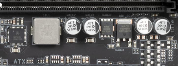 Каждый канал фазы для VCore и iGPU имеет суперферритовый дроссель и MOSFET FDMF5062 от On Semi на 70 А.