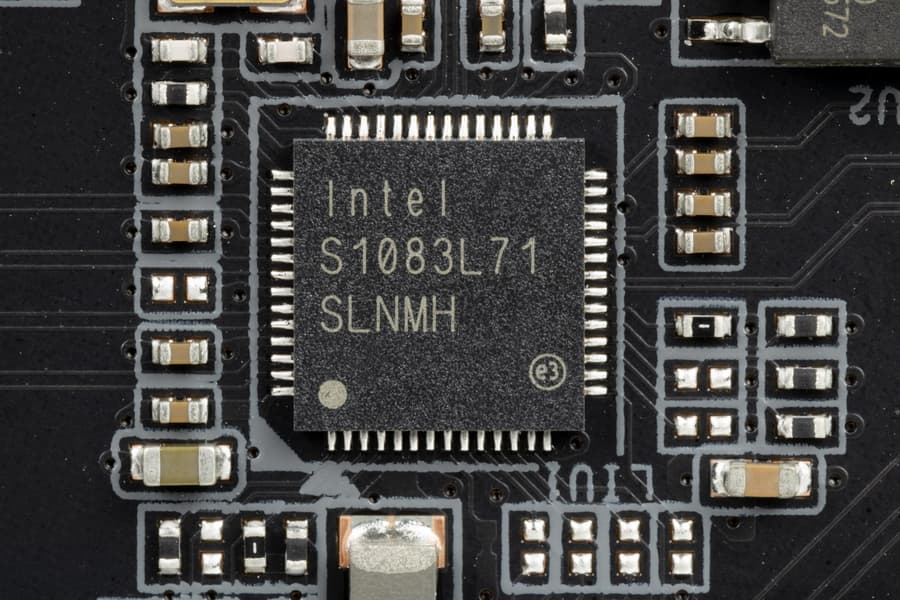 Материнская плата оснащена средствами связи неплохо. Имеется скоростной Ethernet-контроллер Intel I225-V, способный работать по стандарту 2,5 Гбит/с.