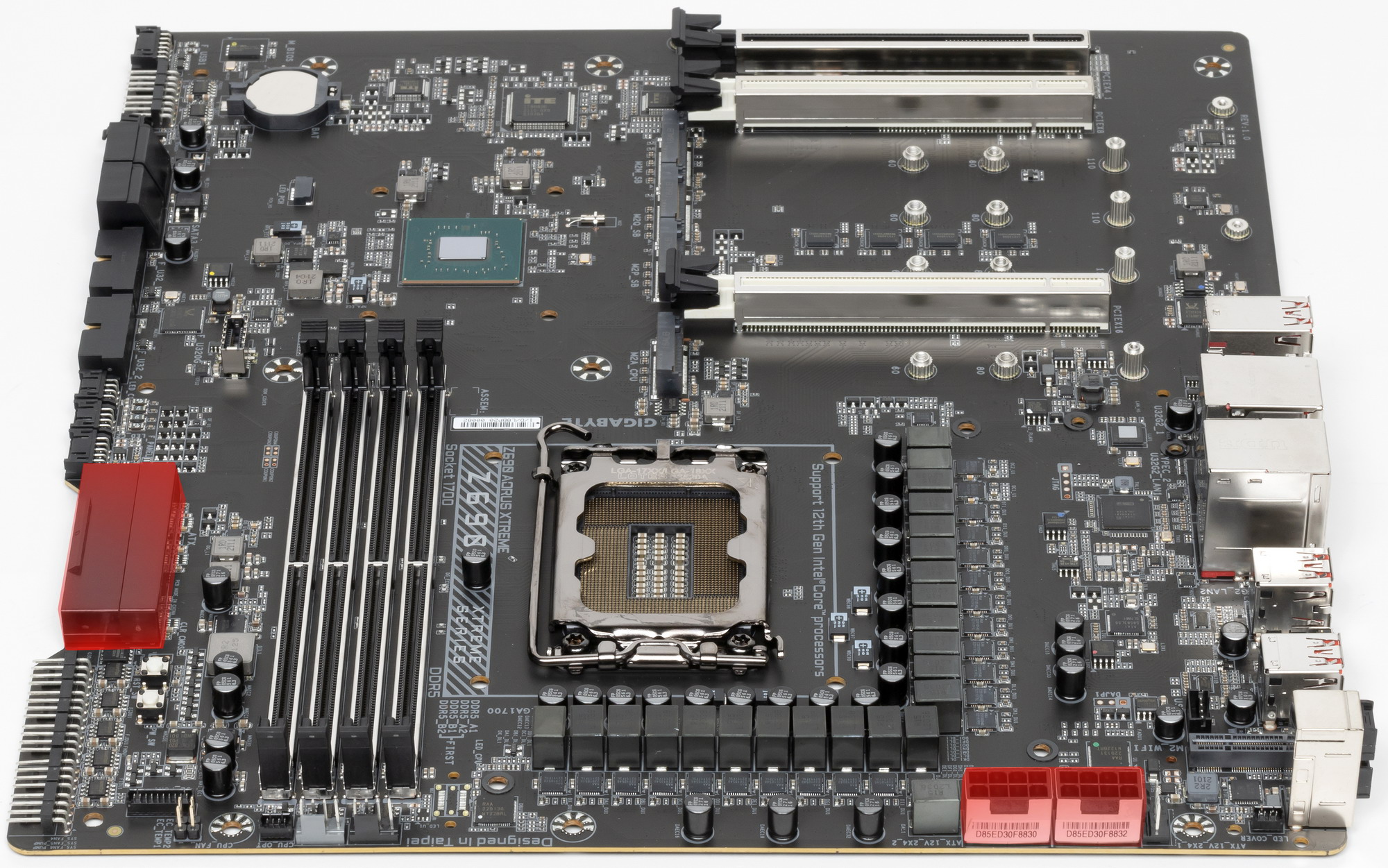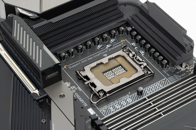 Еще раз надо напомнить, что Gigabyte Z690 Aorus Xtreme поддерживает процессоры Intel Core 12-го поколения, выполненные под разъем (сокет) LGA1700. Система крепления систем охлаждения для CPU несовместима с той, что для LGA1151/1200. Но при этом следует иметь в виду, что ряд старых СО все же сможет быть применим, лишь придется где-то приобретать или заказывать у производителя комплект крепежа под LGA 1700. Дело в в том, что новые процессоры 12ххх на 0.8 мм тоньше предшественников, и кулеры с жесткой установкой в матплате на фиксированную высоту просто не достанут до 12ххх. Подойдут лишь СО с пружинистой посадкой подошвы на процессор.