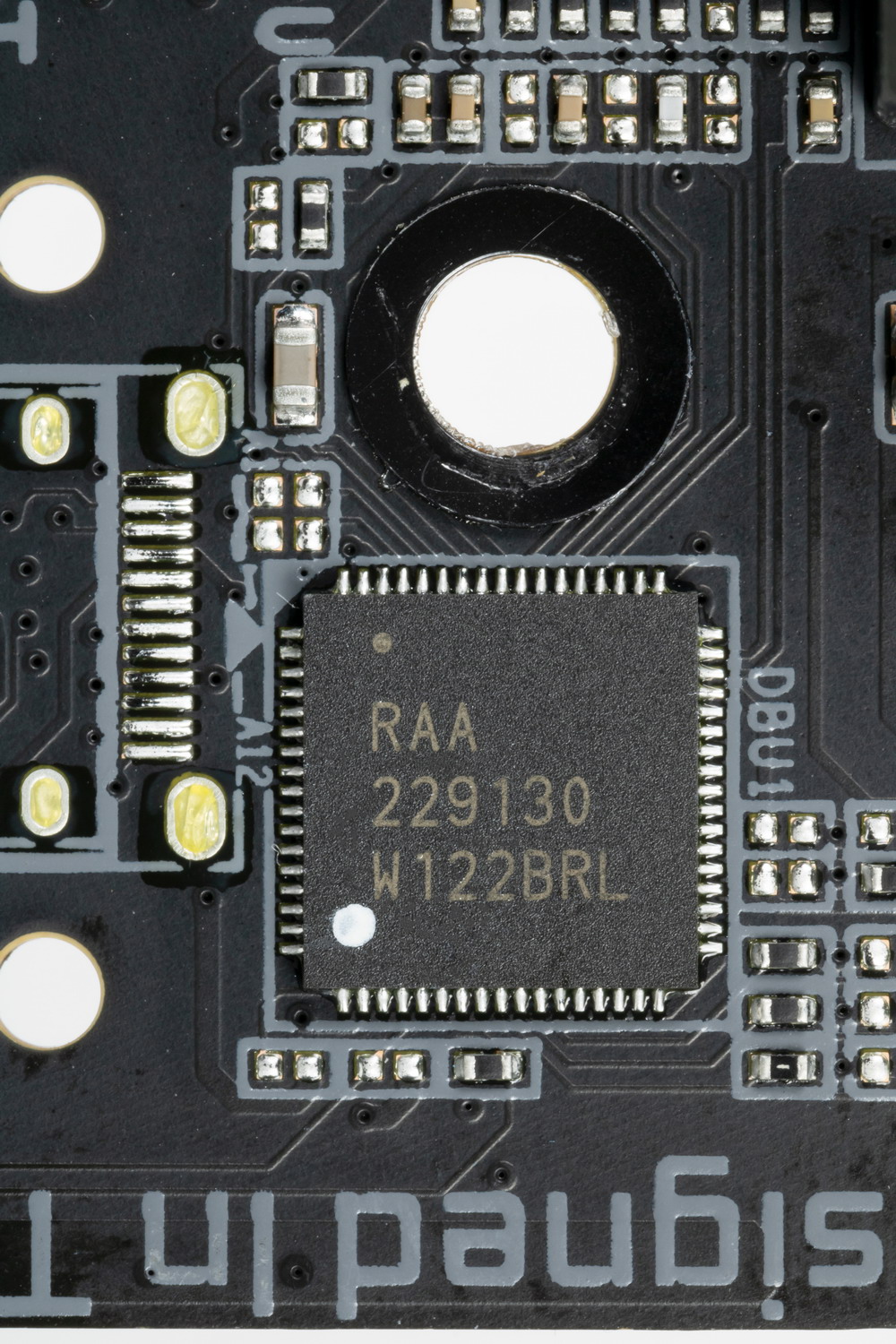 Каждый канал фазы для VCore и iGPU имеет суперферритовый дроссель и RAA22010540 MOSFET от Renesas на 105 А.