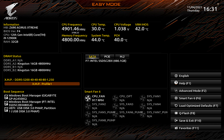 - материнская плата Gigabyte Z690 Aorus Xtreme;