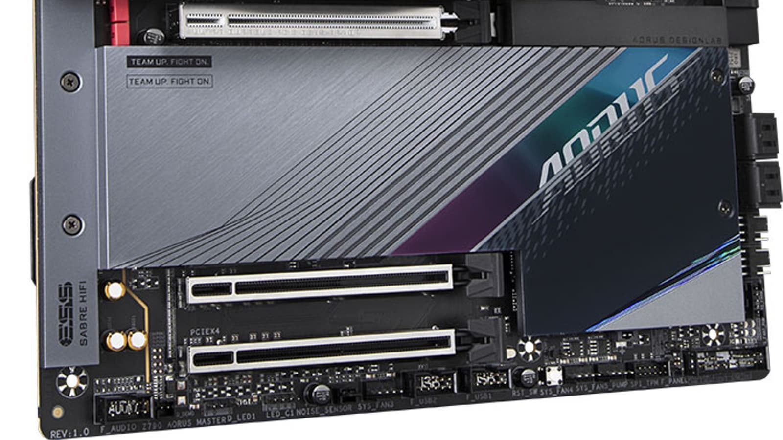 Все три слота PCIe x16 имеют металлическое армирование из нержавеющей стали, которое увеличивает их надежность. Кроме того, такая защита предохраняет слоты от электромагнитных помех.