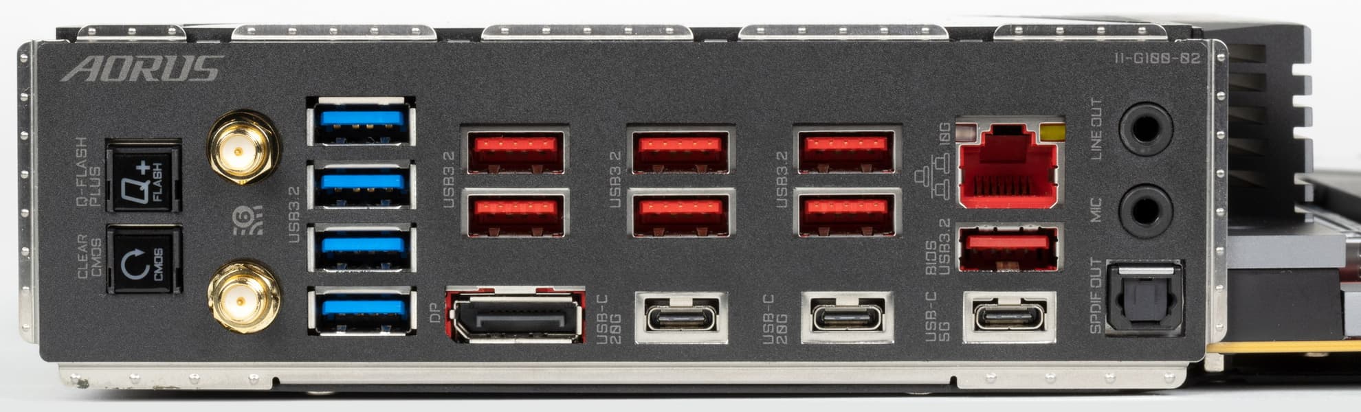 | USB-порты | 4 × USB 2.0: 2 внутренних разъема на 4 порта (GL850G) 4 × USB 3.2 Gen1: 2 внутренних разъема на 4 порта (RTS5411) 4 × USB 3.2 Gen1: 4 порта Type-A (RTS5411) 1 × USB 3.2 Gen2: 1 порт Type-C (RTS5487) 1 × USB 3.2 Gen2x2: внутренний разъем Type-C (Z790) 2 × USB 3.2 Gen2x2: 2 порта Type-C (Z790) 7 × USB 3.2 Gen2: 7 портов Type-A (красные) (2xRTS5487) |