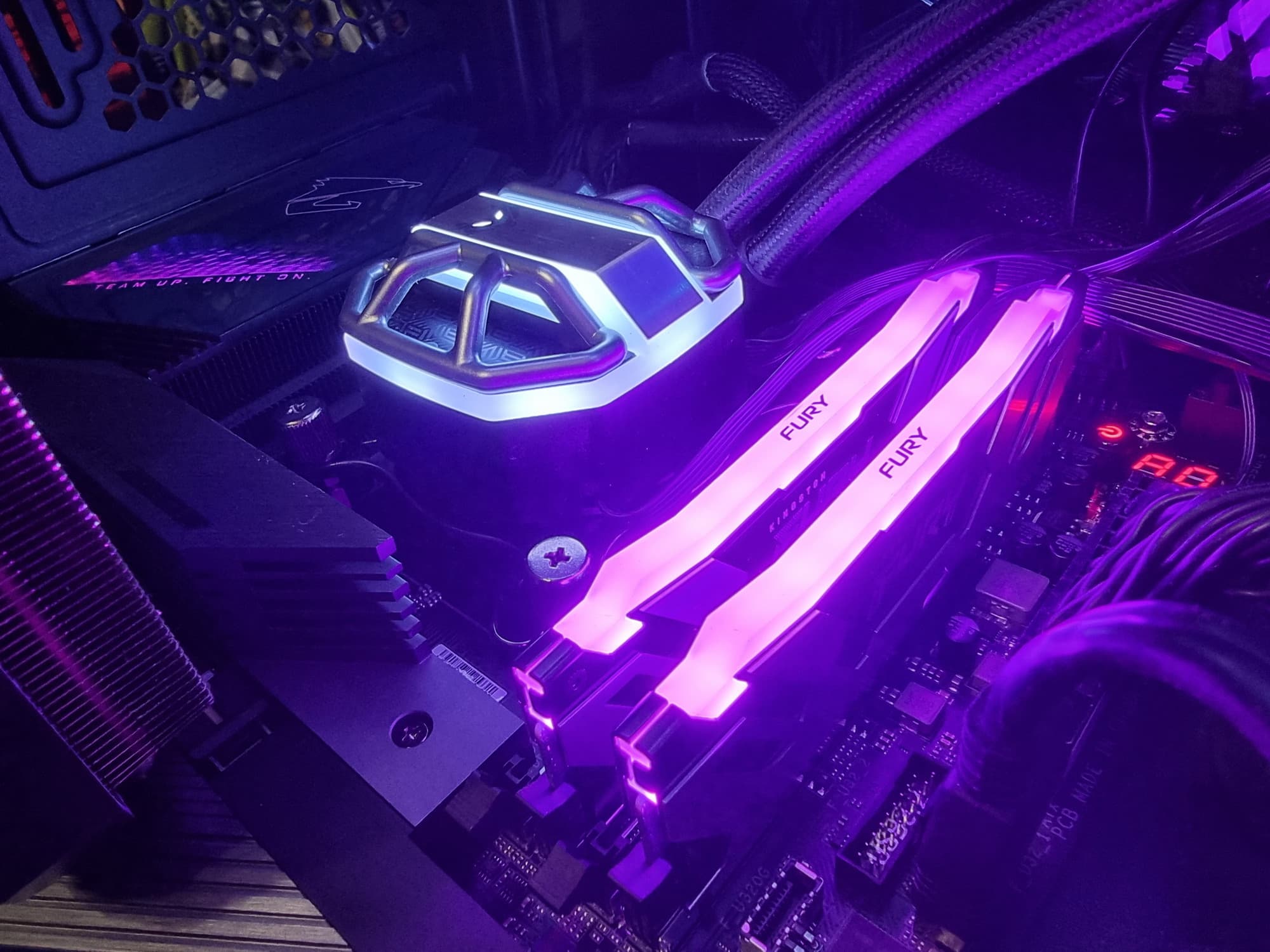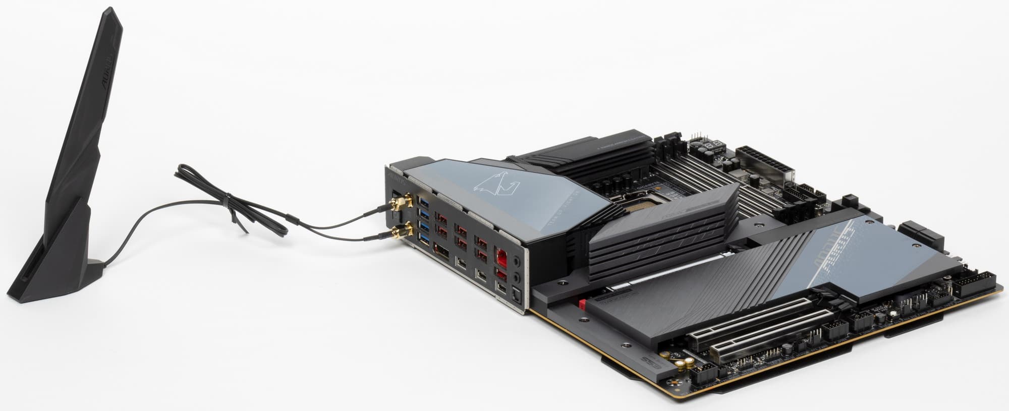 Радиатор VRM, идущий вдоль заднего блока портов, имеет кожух, прикрывающий тот самый блок, оснащенный подсветкой.