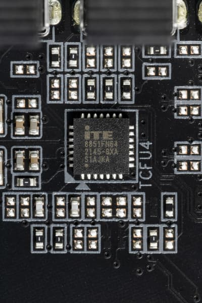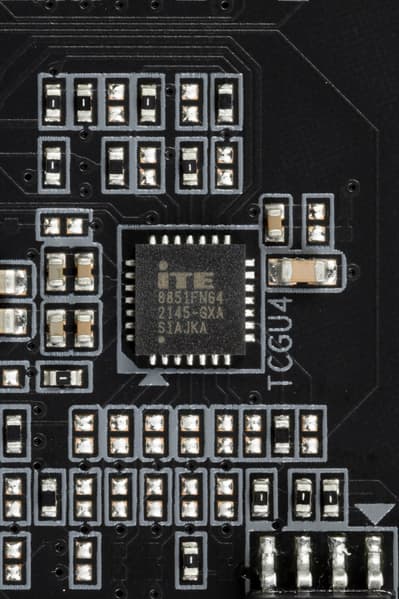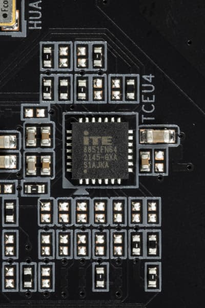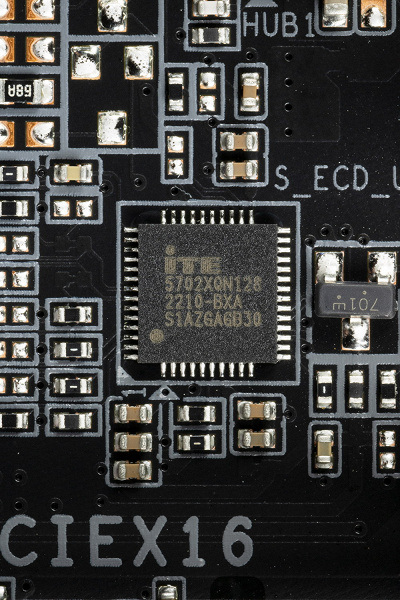 Для поддержания стабильных частот на шине PCIe (и для нужд оверклокеров) имеется внешний тактовый генератор. А также имеются усилители (ре-драйверы) сигнала PCIe 4.0 от ITE.