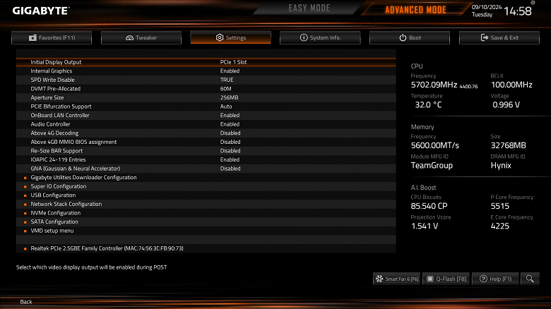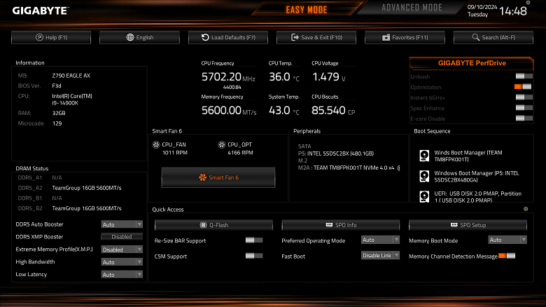 Еще раз надо напомнить, что Gigabyte Z790 Eagle AX поддерживает процессоры Intel Core 12/13/14-го поколений, выполненные под разъем (сокет) LGA1700.