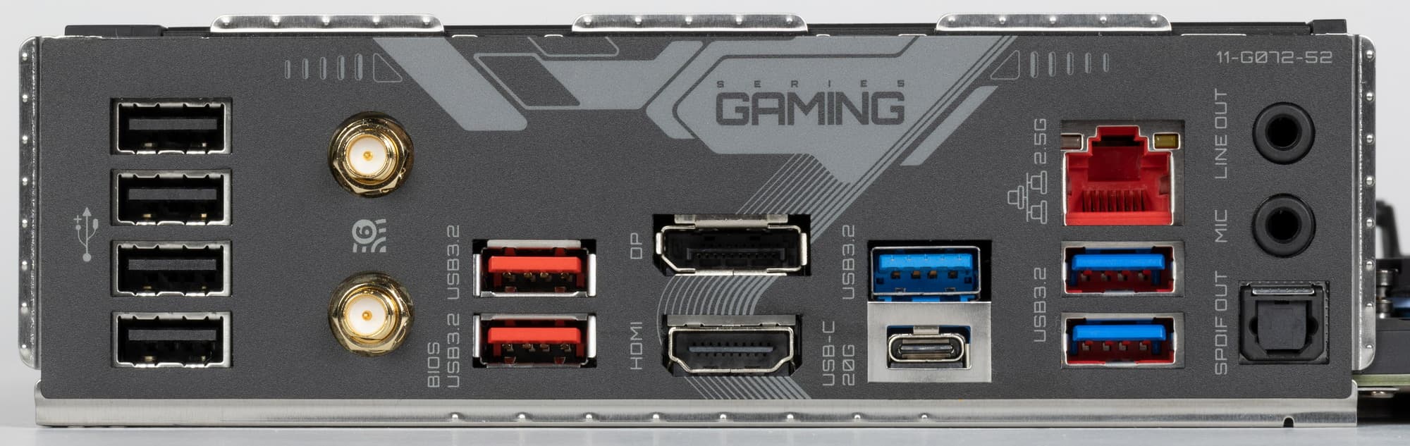 | Разъемы на задней панели | 1 × USB 3.2 Gen2x2 (Type-C) 2 × USB 3.2 Gen2 (Type-A) 3 × USB 3.2 Gen1 (Type-A) 4 × USB 2.0 (Type-A) 1 × RJ-45 2 аудиоразъема типа миниджек 1 × S/PDIF (оптический, выход) 1 × DP 1 × HDMI 2 антенных разъема |