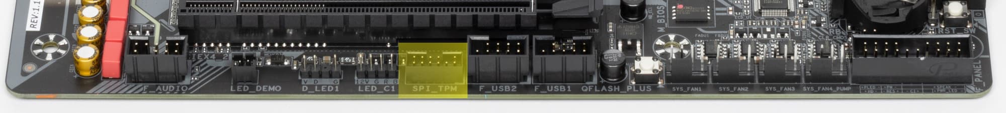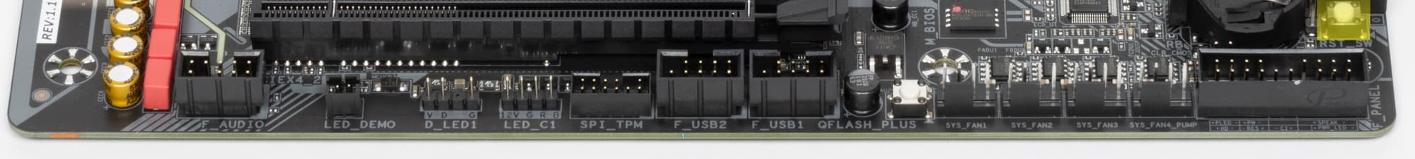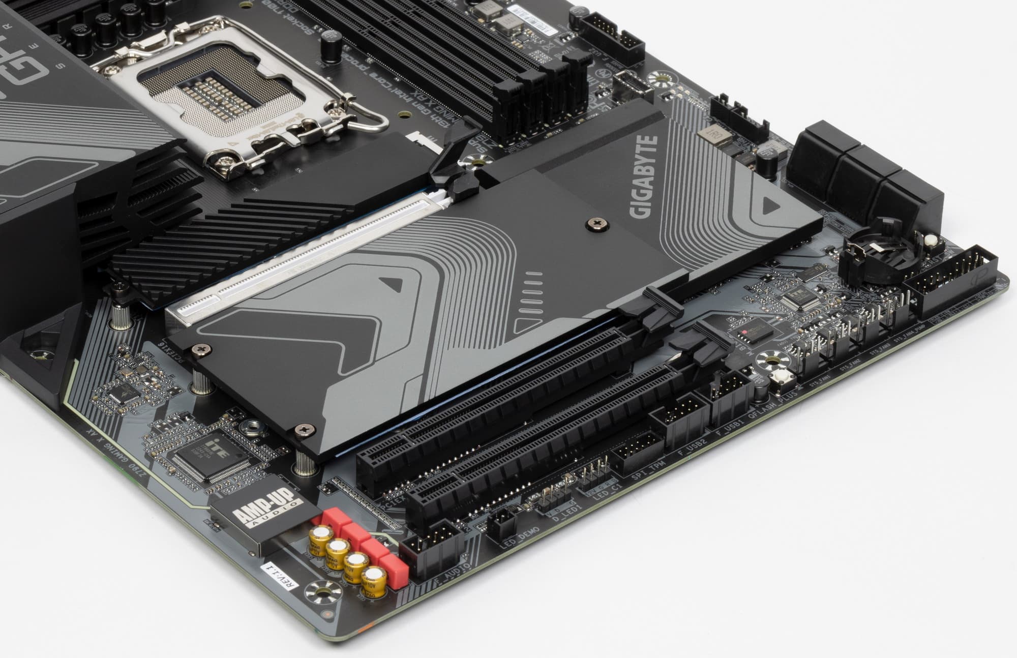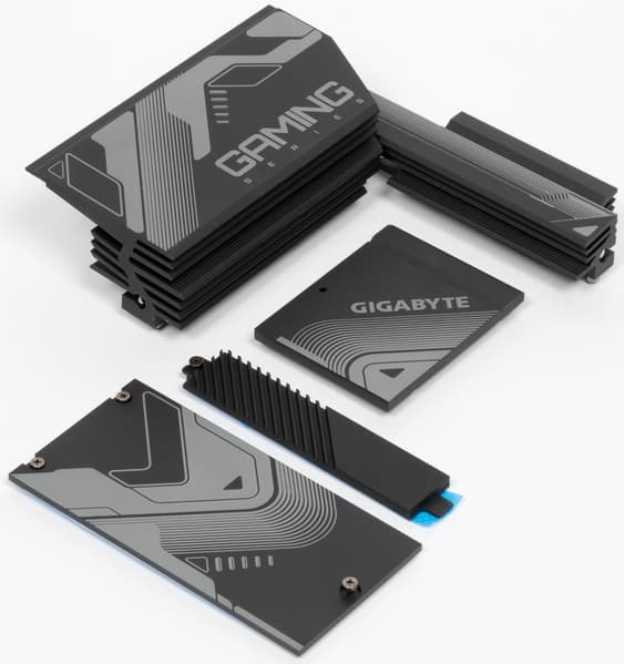 Все M.2 слоты имеют радиаторы. Верхний M2A_CPU обладает отдельным радиатором, когда как остальные все слоты M.2 имеют общий радиатор.