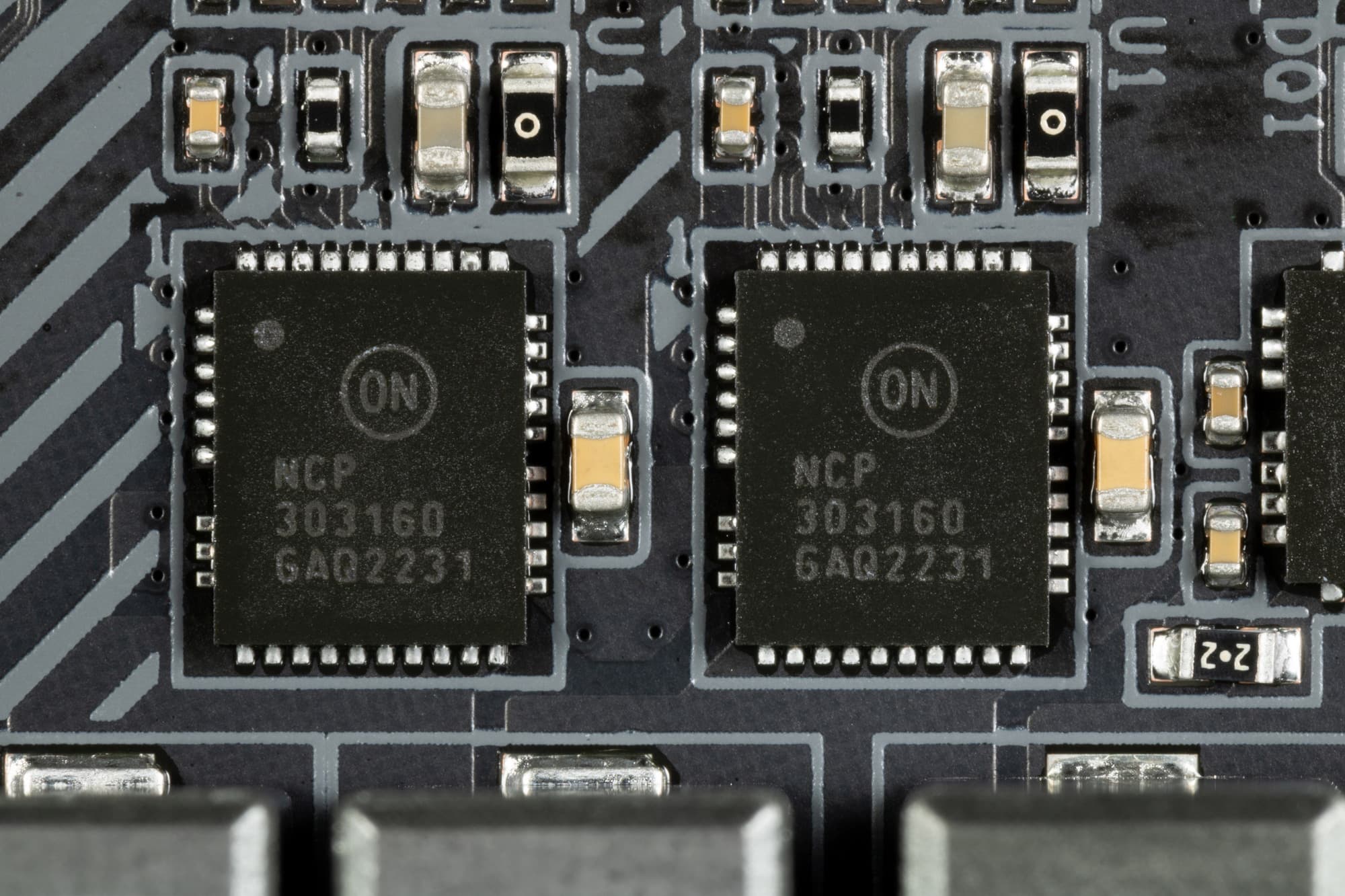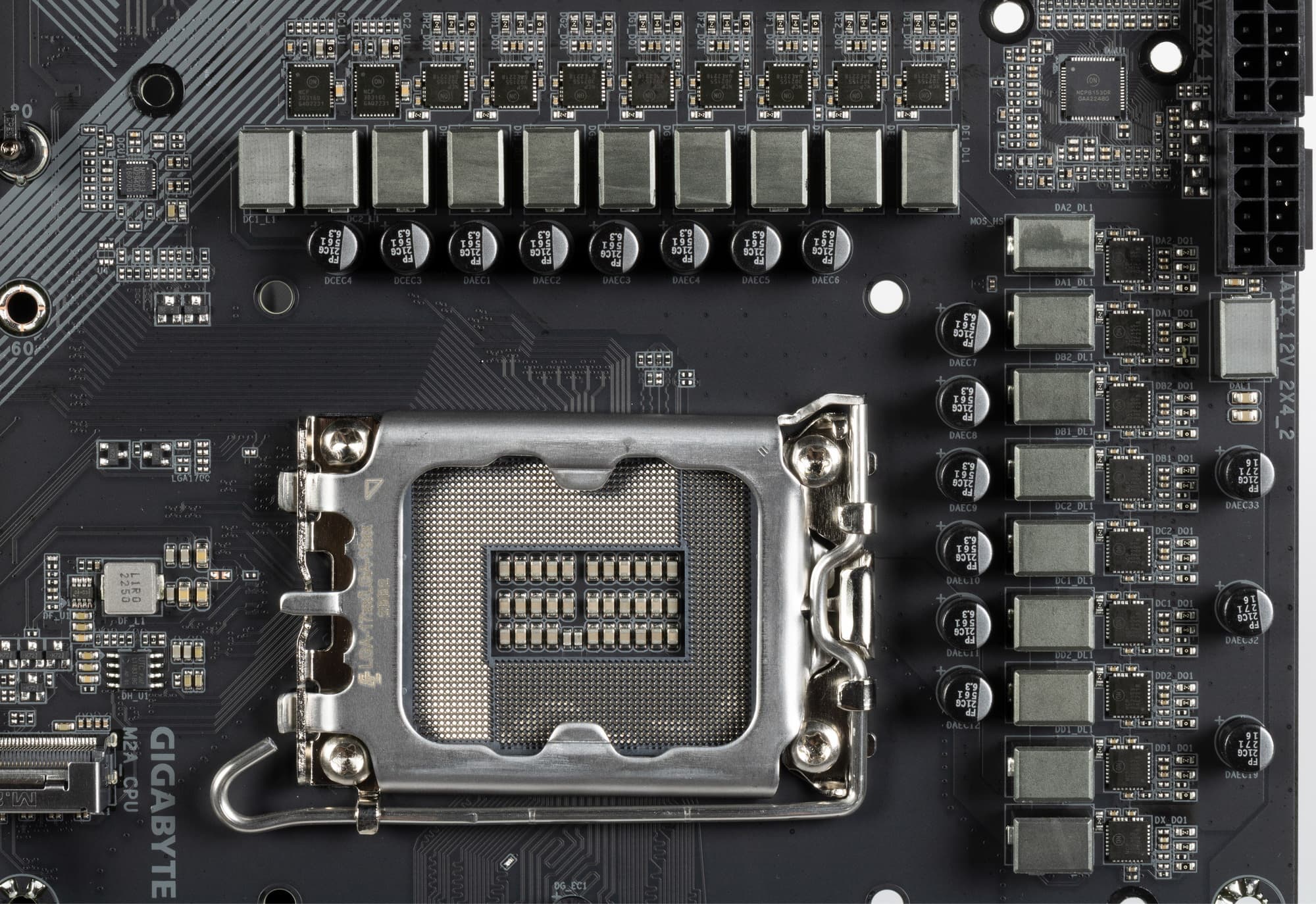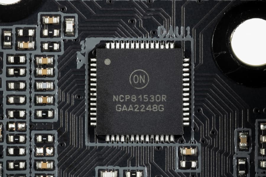 Каждый канал фазы VCore и iGPU имеет суперферритовый дроссель и DrMOS NCP302155 (55 A) On Semi.