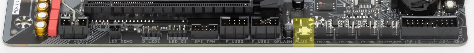 Для удобного извлечения видеокарт из слота имеется специальный удлиненный «хвостик» на замке PCIe x16_1, ведь подчас неудобно дотягиваться до обычного «хвоста» слота, где требуется нажать на защелку для разблокирования карты в слоте: ведь как правило, выше первого слота PCIe имеется M.2 слот с высоким радиатором, и до защелки даже пальцем не дотянуться.