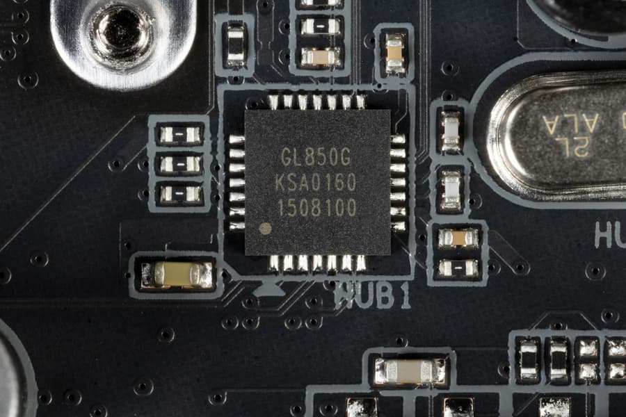 - 8 портов USB 2.0/1.1: 4 реализованы через контроллер Genesys Logic GL850G (на него потрачена 1 линия USB 2.0 от Z790) и представлены двумя внутренними разъемами (каждый на 2 порта); еще 4 реализованы через второй контроллер Genesys Logic GL850G (на него потрачена 1 линия USB 2.0 от Z790) и представлены представлены на задней панели портами Type-A (черного цвета) .