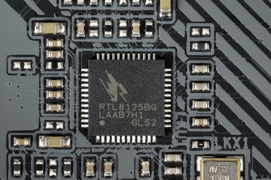 Материнская плата оснащена средствами связи неплохо. Имеется скоростной Ethernet-контроллер Realtek RTL8125BG, способный работать по стандарту 2,5 Гбит/с.