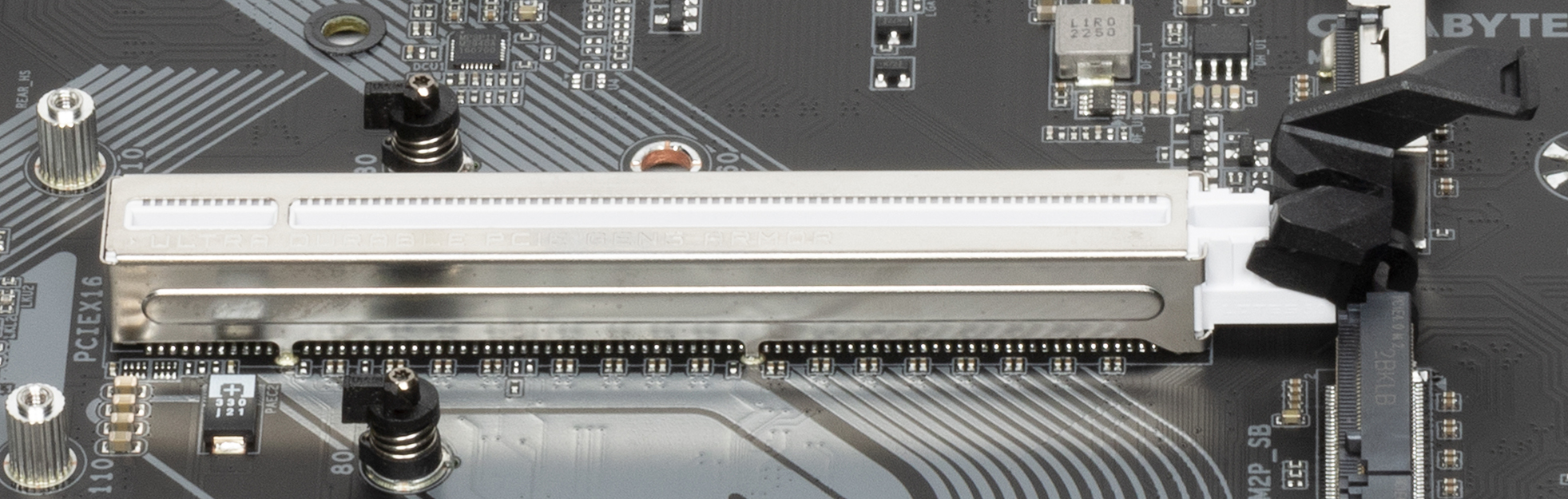 Первый слот PCIe x16 имеет металлическое армирование из нержавеющей стали, которое увеличивает надежность. Кроме того, такая защита предохраняет слот от электромагнитных помех.