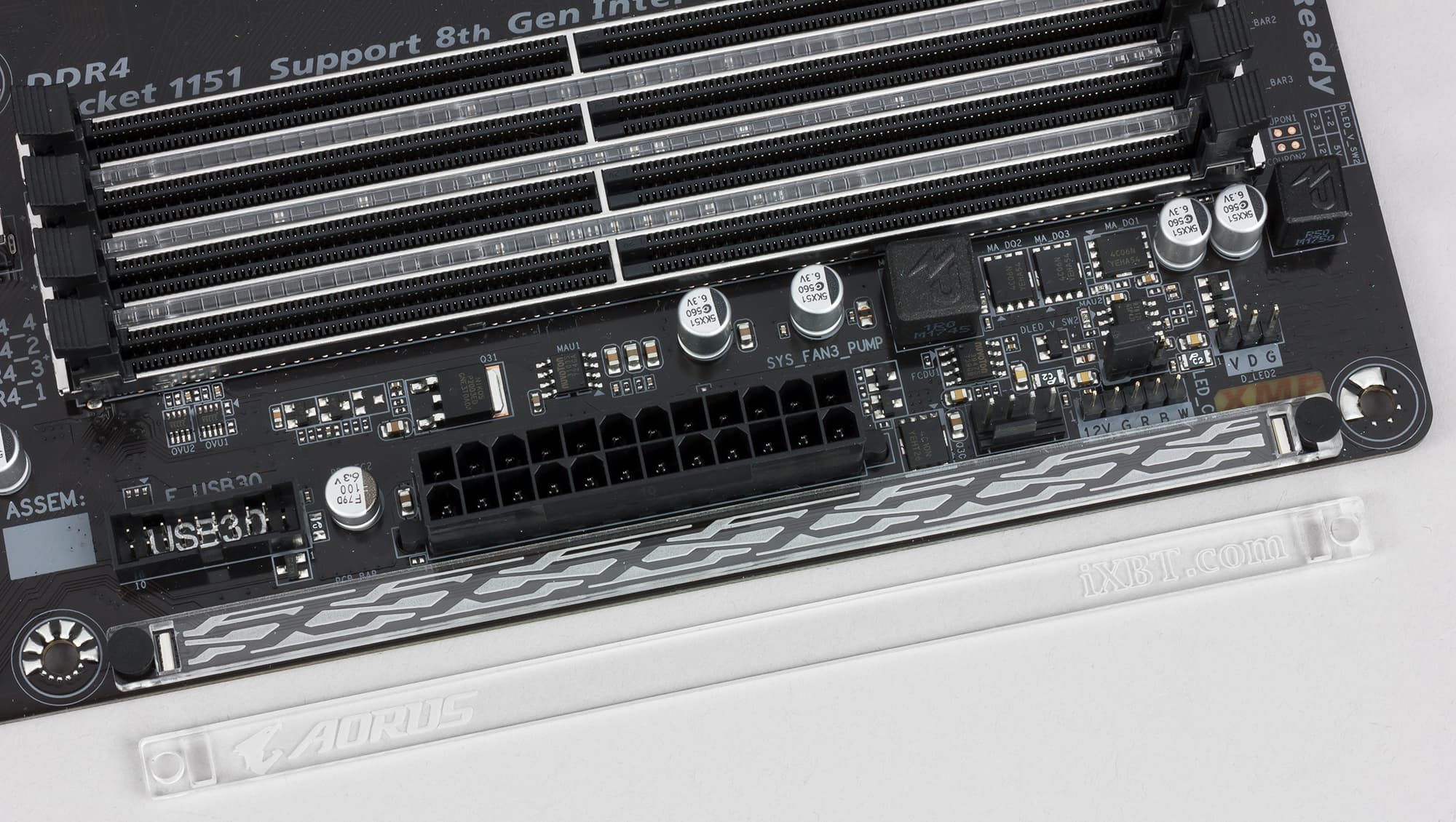 Как и большинство плат, модель H370 Aorus Gaming 3 WiFi имеет 24-контактный и 8-контактный разъемы для подключения блока питания.
